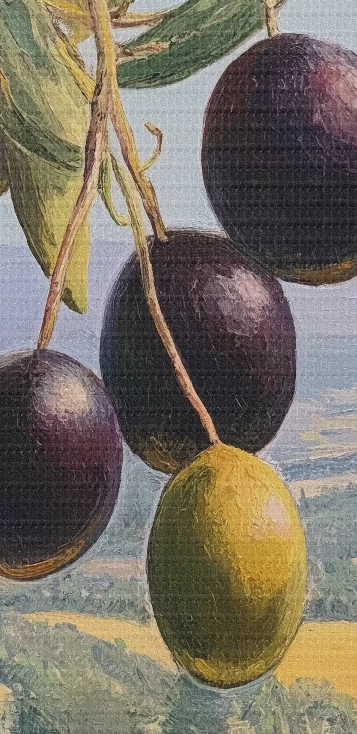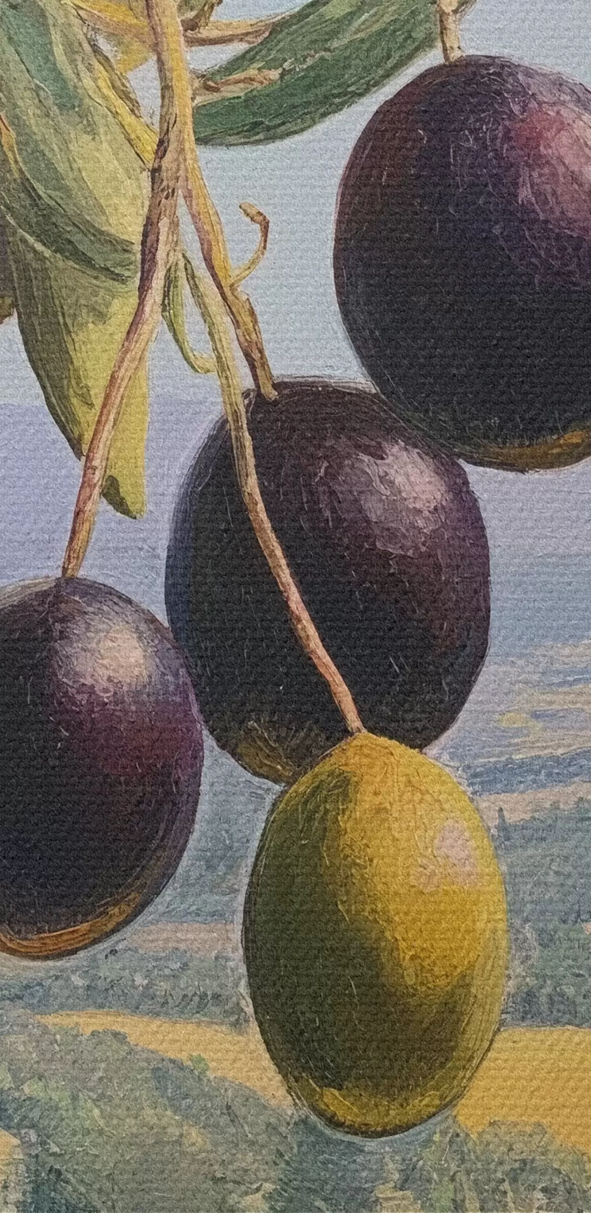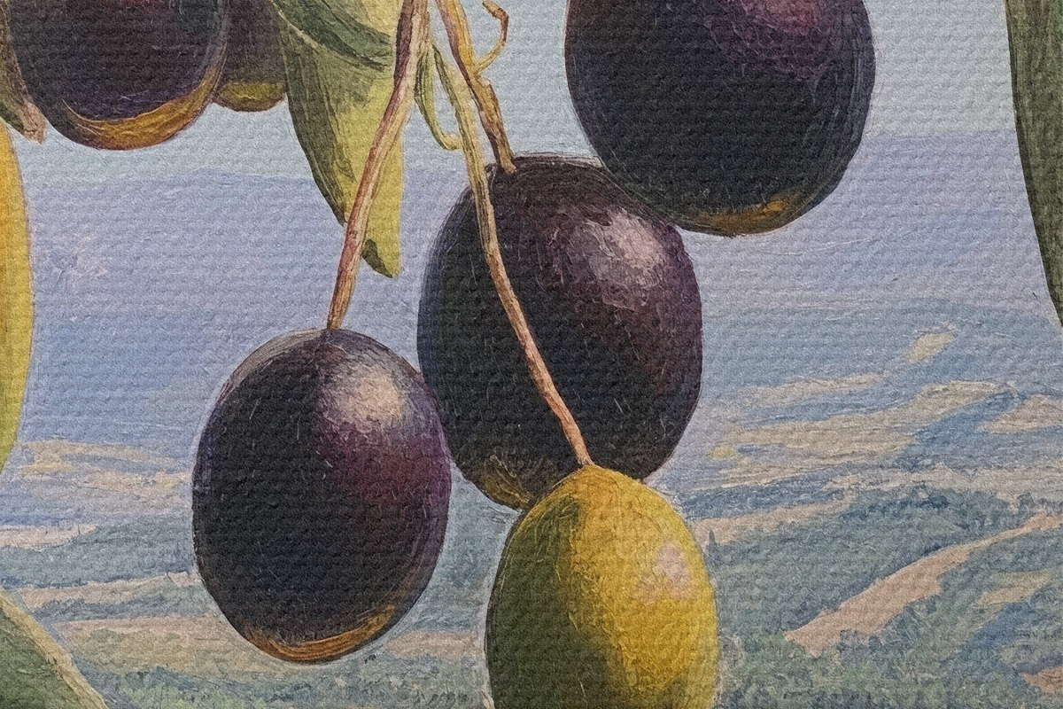 Foto Rama de olivo con frutos oscuros sobre un paisaje veraniego Nr r46150