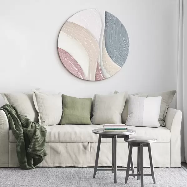 Cuadros redondos Ondas abstractas ligeras en tonos rosa pálido y blanco grisáceo r46153
