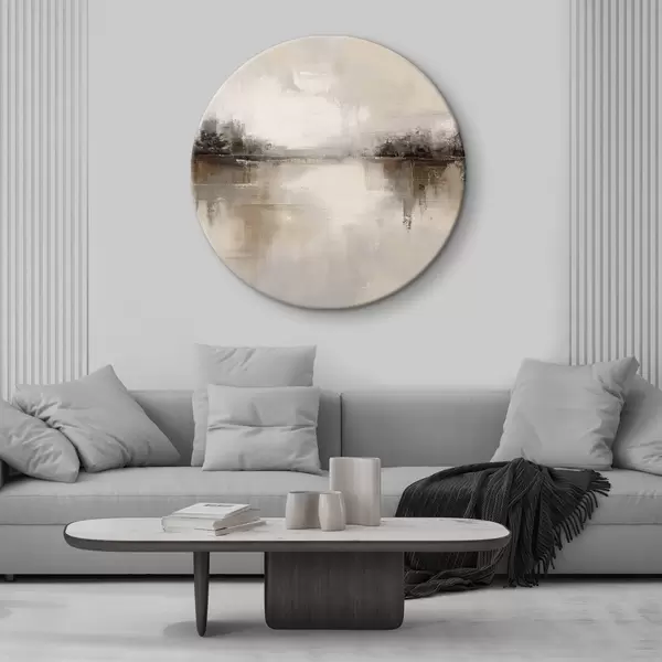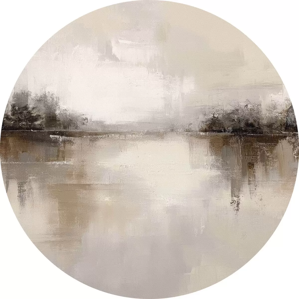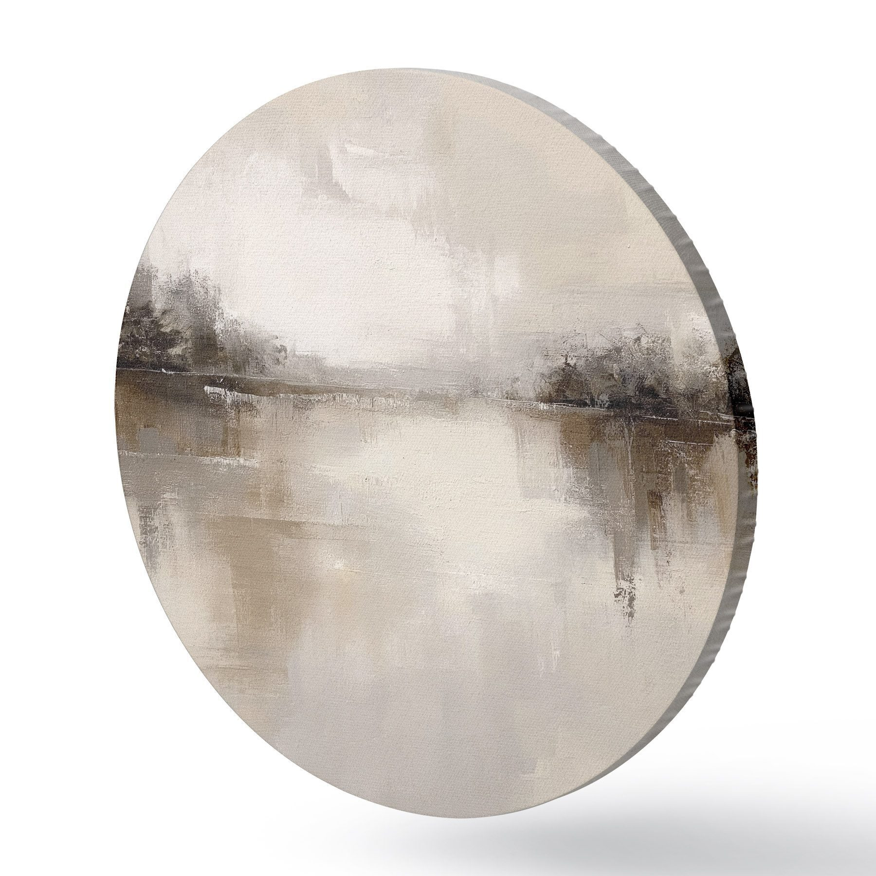 Cuadros redondos Paisaje suave con un lago en cálidos tonos beige y gris r46158