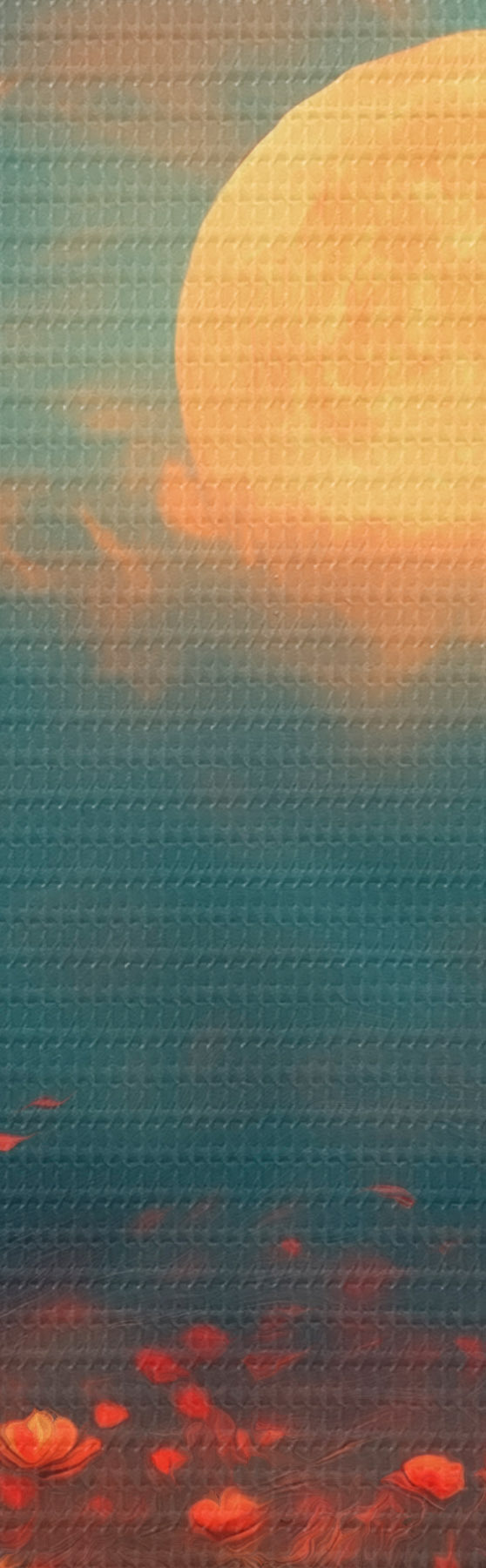 Cuadros redondos Luna sobre un campo de flores rojas en un cielo brumoso al atardecer r46167