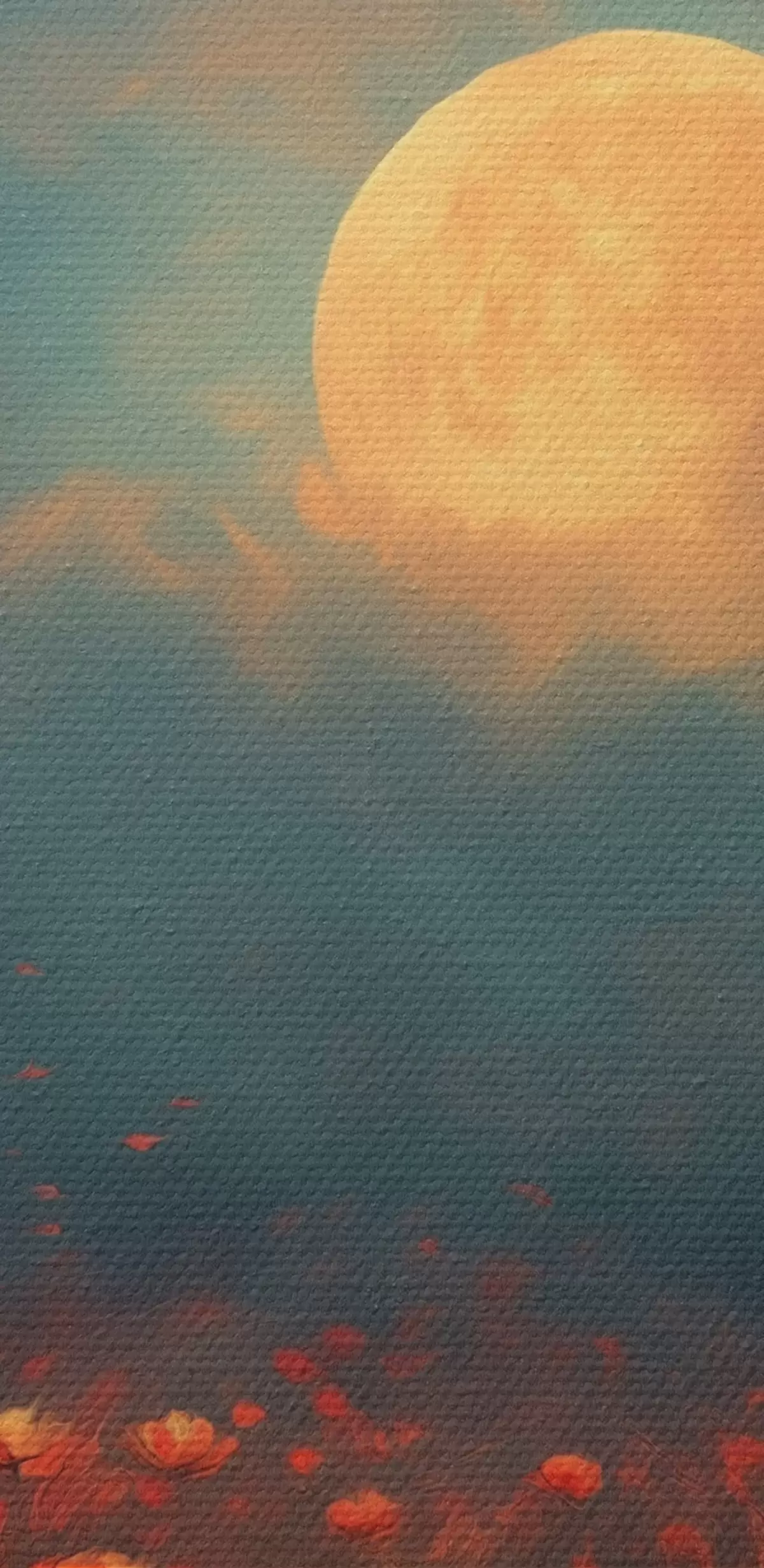 Foto Luna sobre un campo de flores rojas en un cielo brumoso al atardecer Nr r46167
