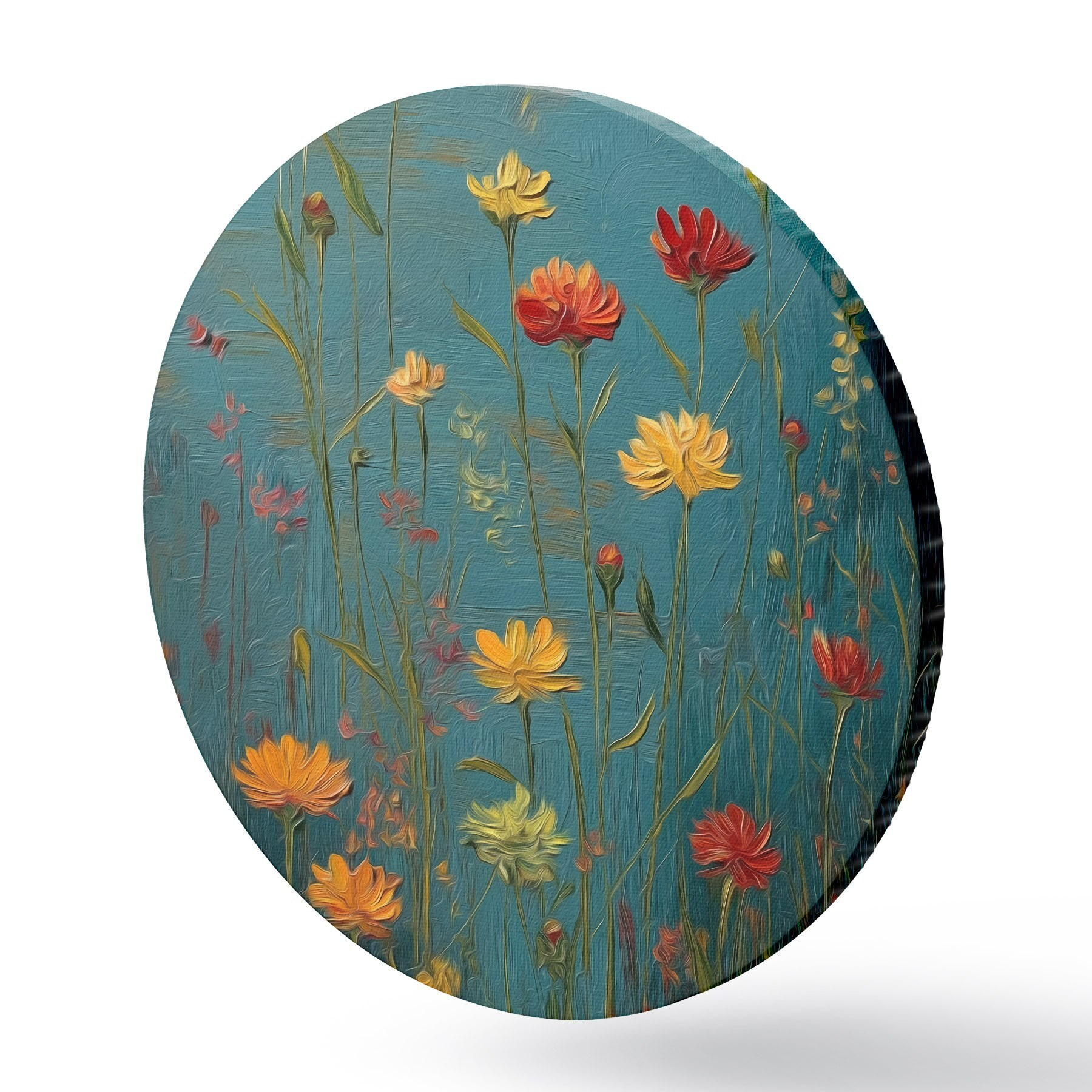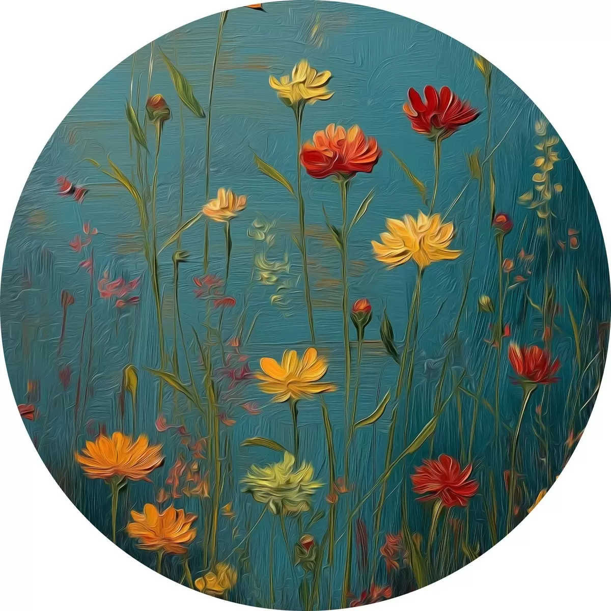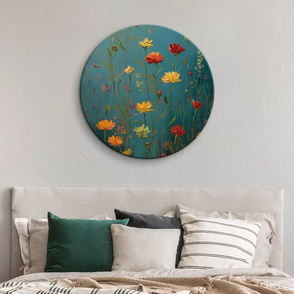 Cuadros redondos Flores silvestres sobre un fondo turquesa intenso r46169