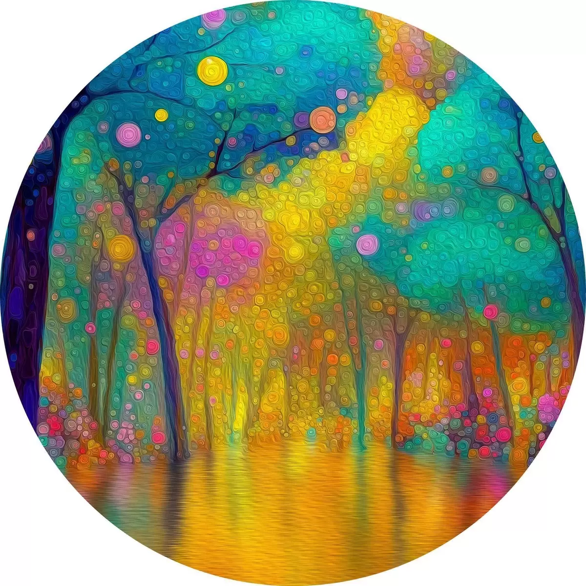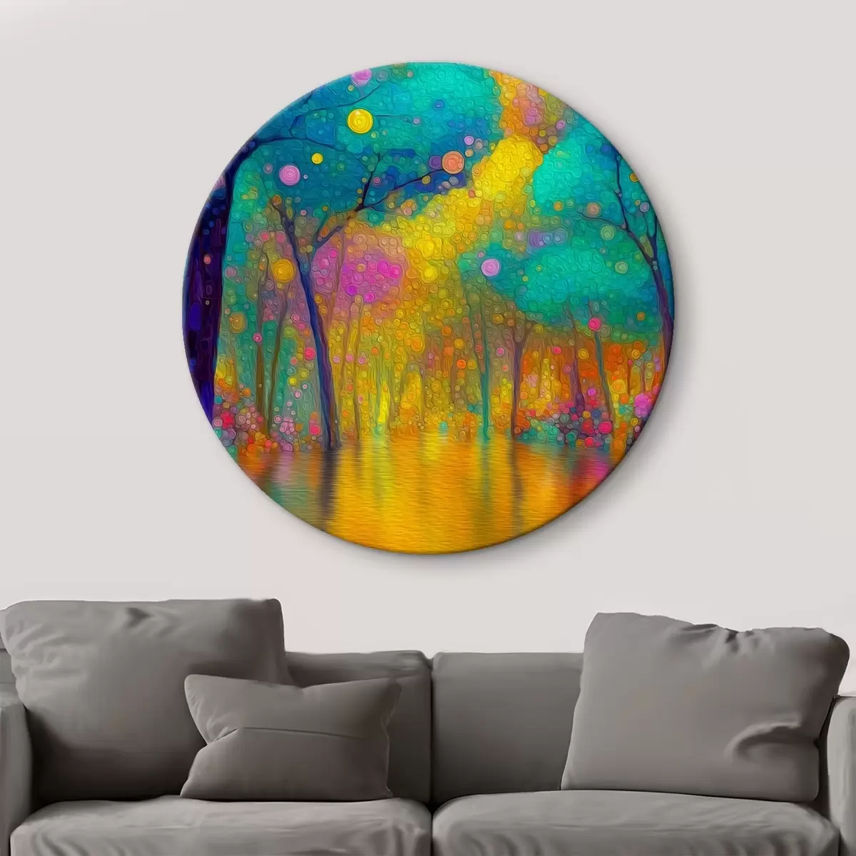 Cuadros redondos Bosque fantástico y vívido con reflejos en el agua r46171