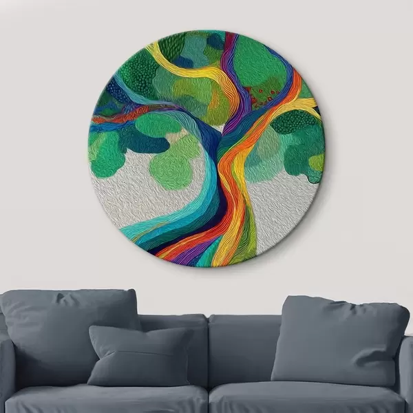 Cuadros redondos Árbol con ramas arcoíris sobre fondo verde r46173