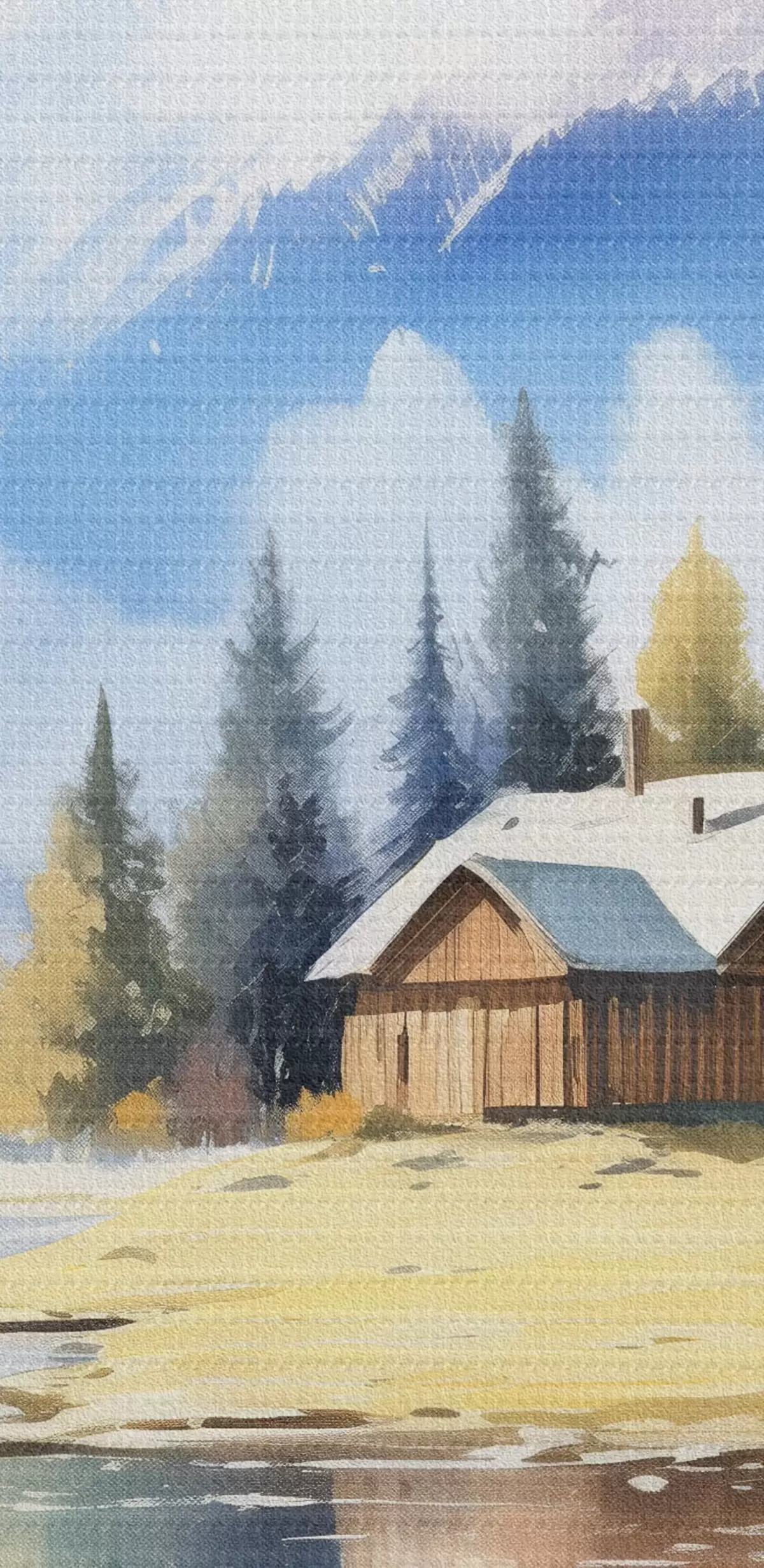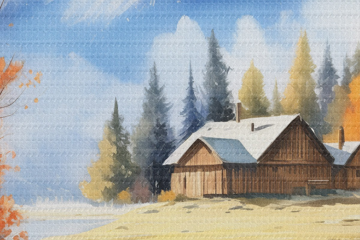 Foto Paisaje otoñal junto al lago con una casa y montañas Nr r46184
