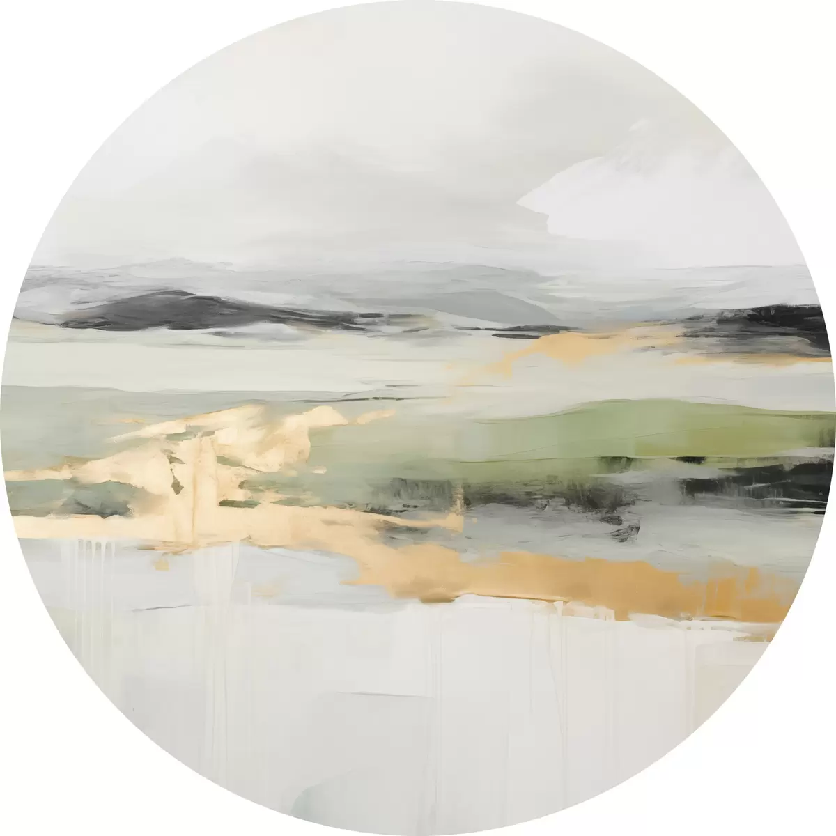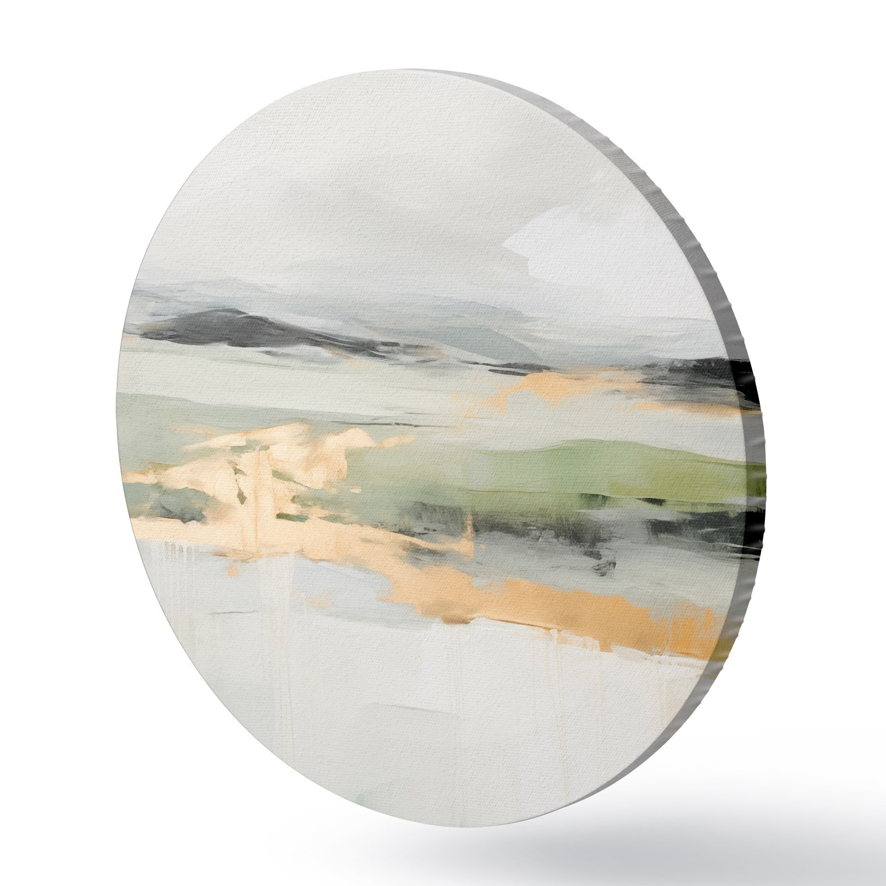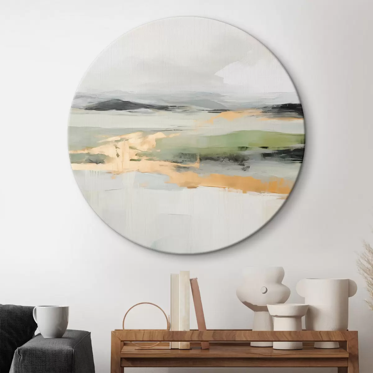 Cuadros redondos Paisaje abstracto con toques amarillos, una composición minimalista de tierra, agua y cielo, con colores apagados r46269