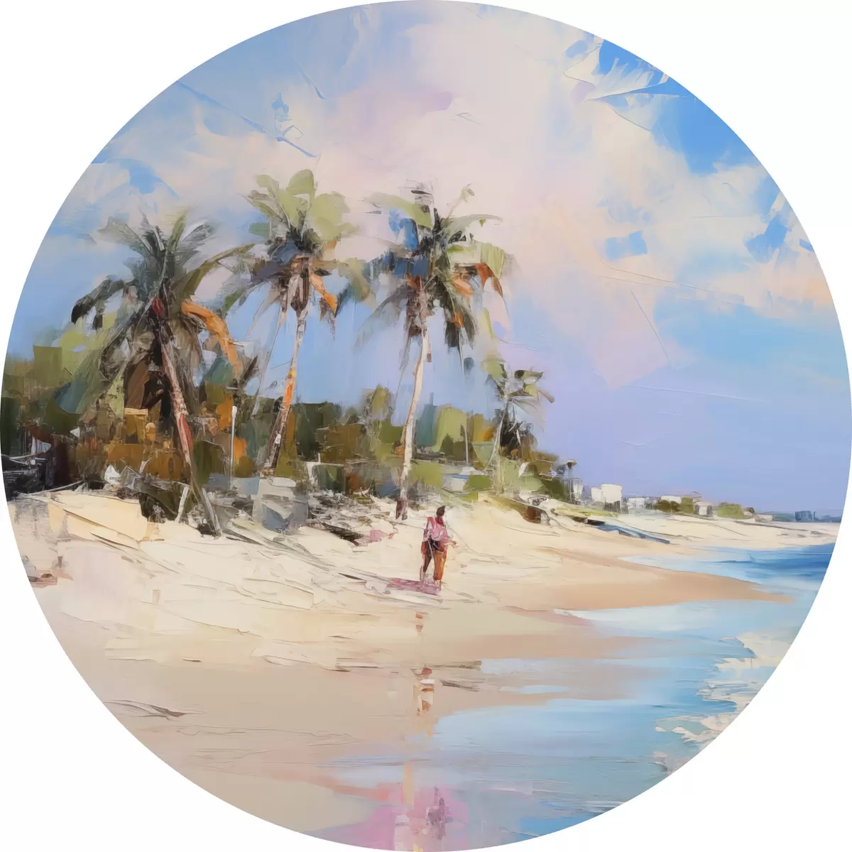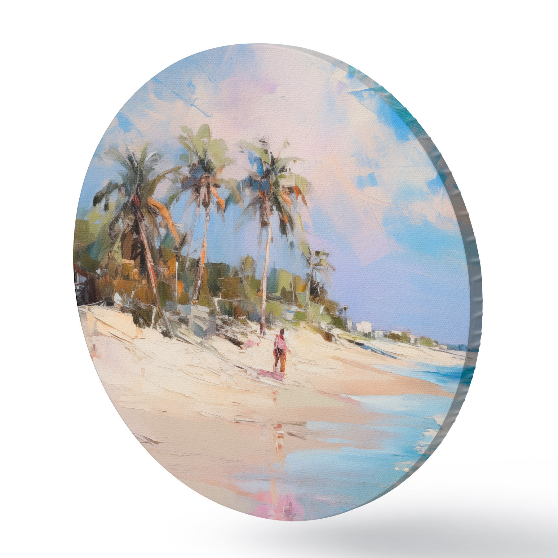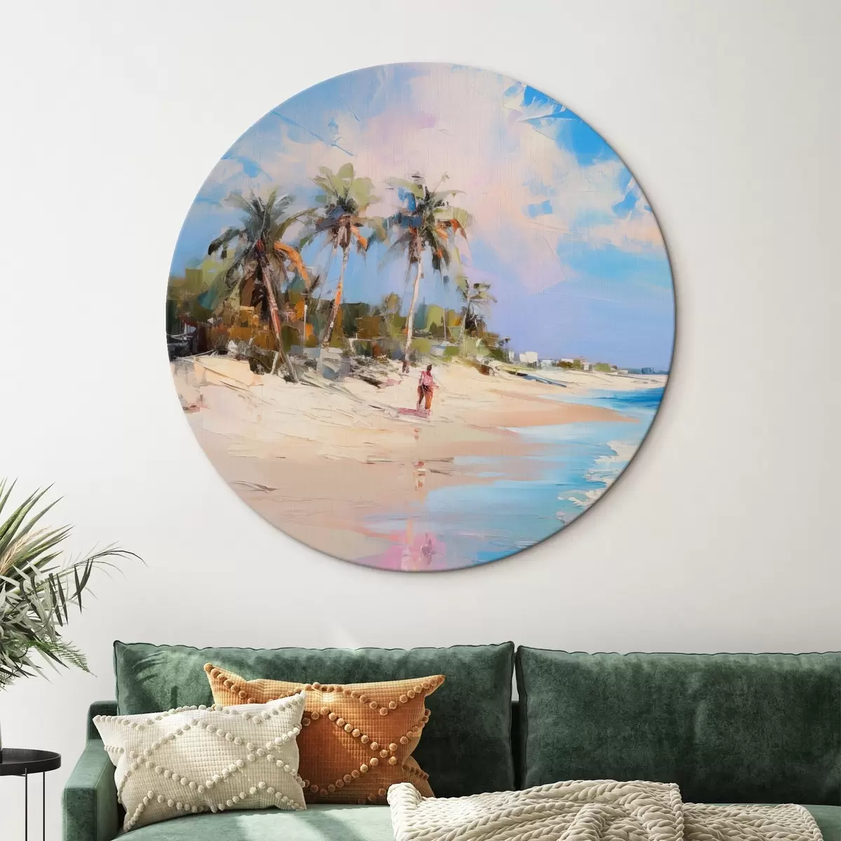 Cuadros redondos Paisaje abstracto, una playa con palmeras, un día soleado con un cielo azul y algunas nubes r46284