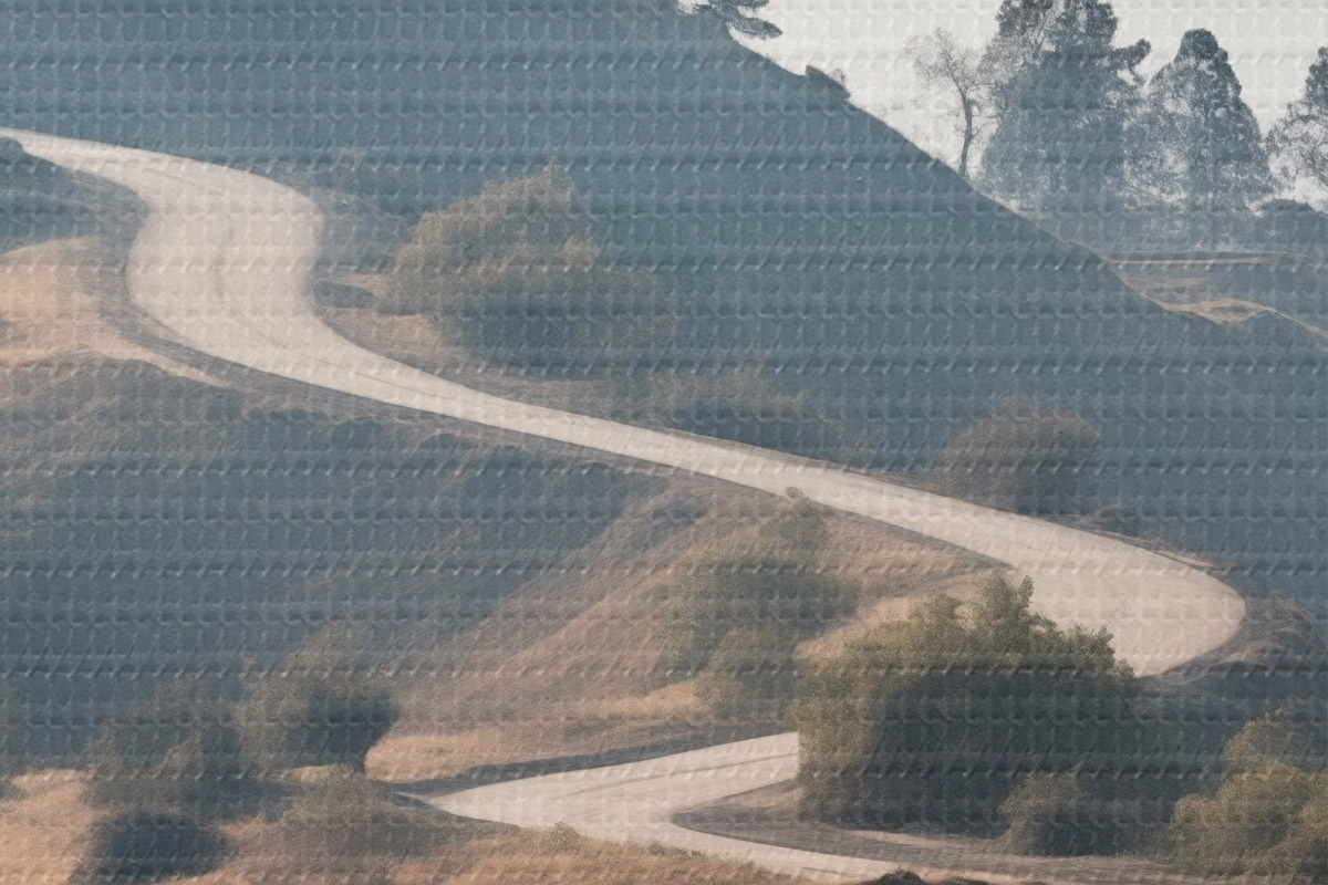 Foto Una sinuosa carretera que atraviesa un paisaje montañoso con hierba seca bajo un cielo despejado y montañas en la distancia Nr r46289