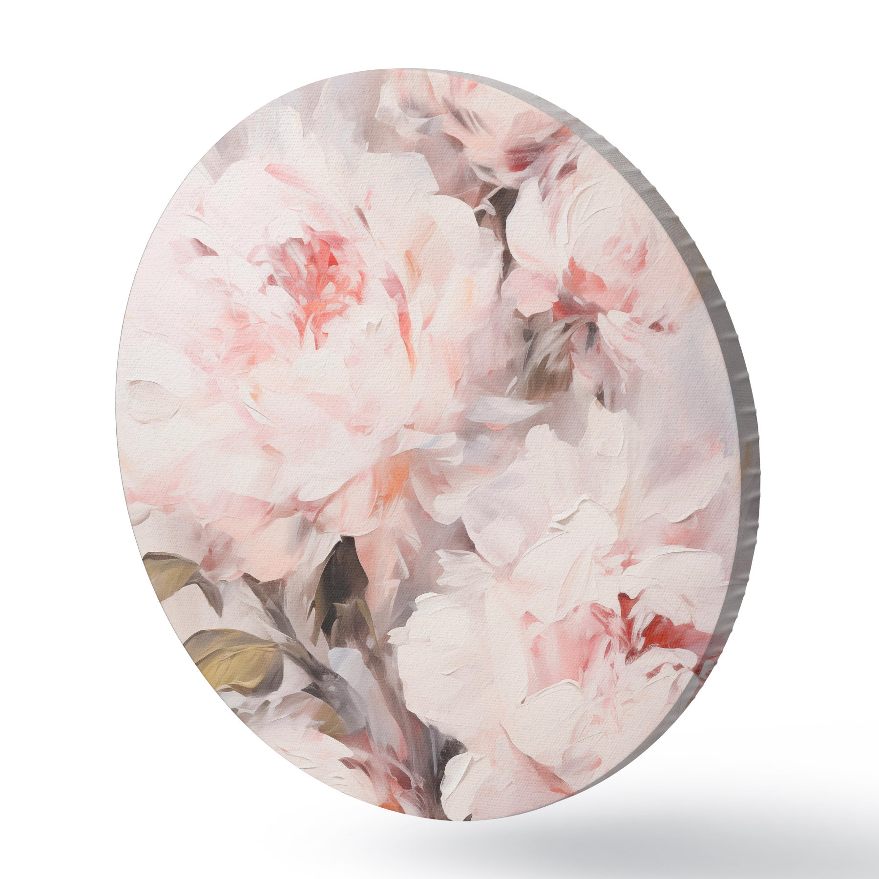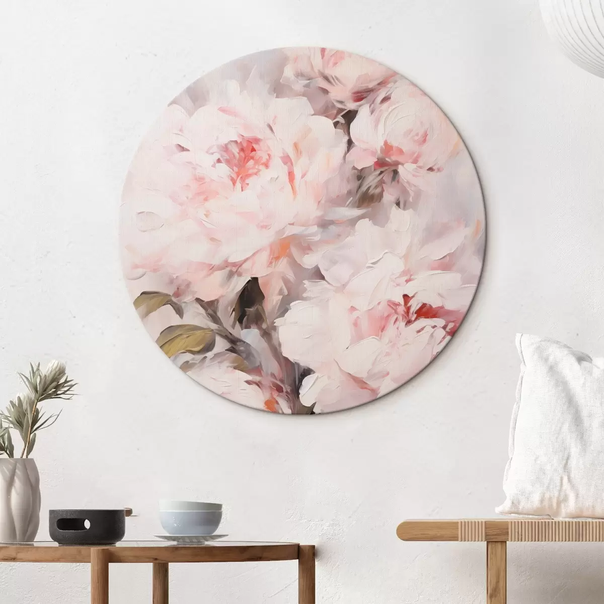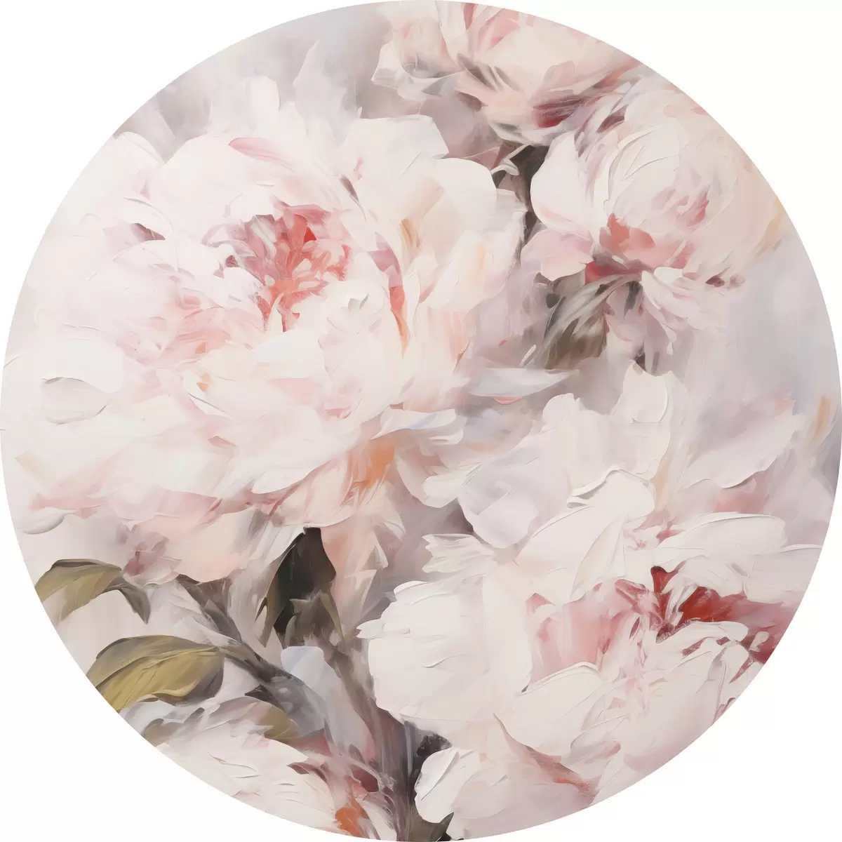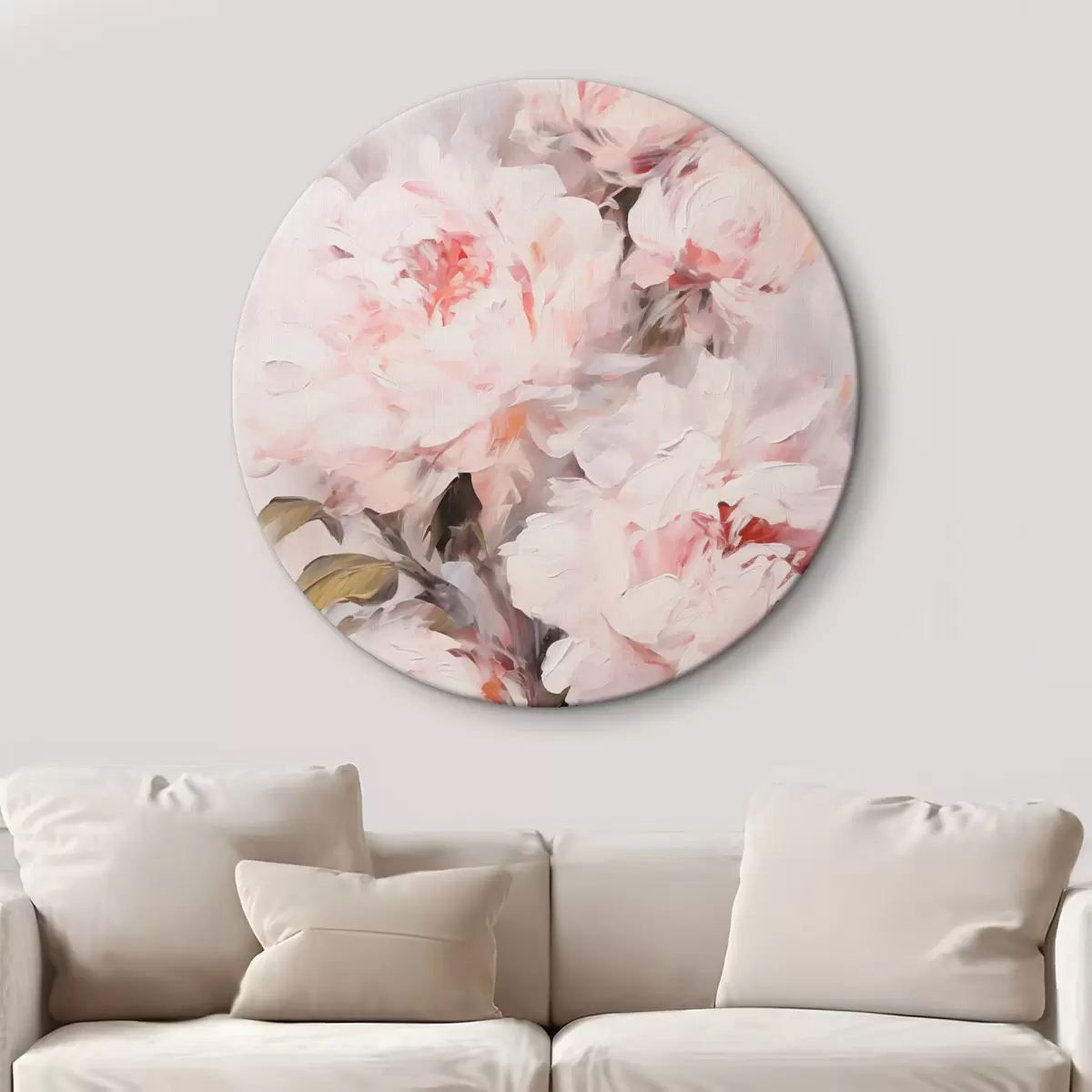 Cuadros redondos Ramo de peonías rosa claro con hojas verdes, pinceladas suaves, colores pastel, sobre un fondo claro r46294