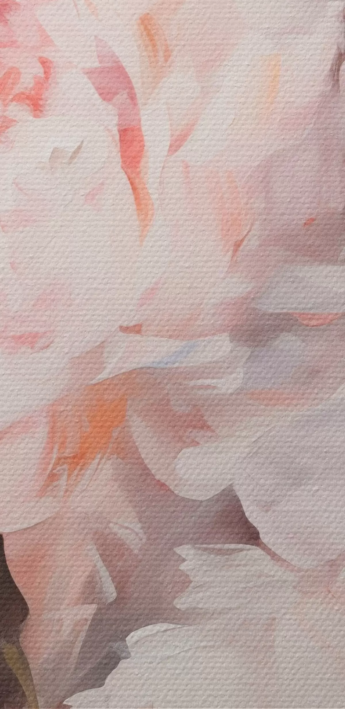 Foto Ramo de peonías rosa claro con hojas verdes, pinceladas suaves, colores pastel, sobre un fondo claro Nr r46294