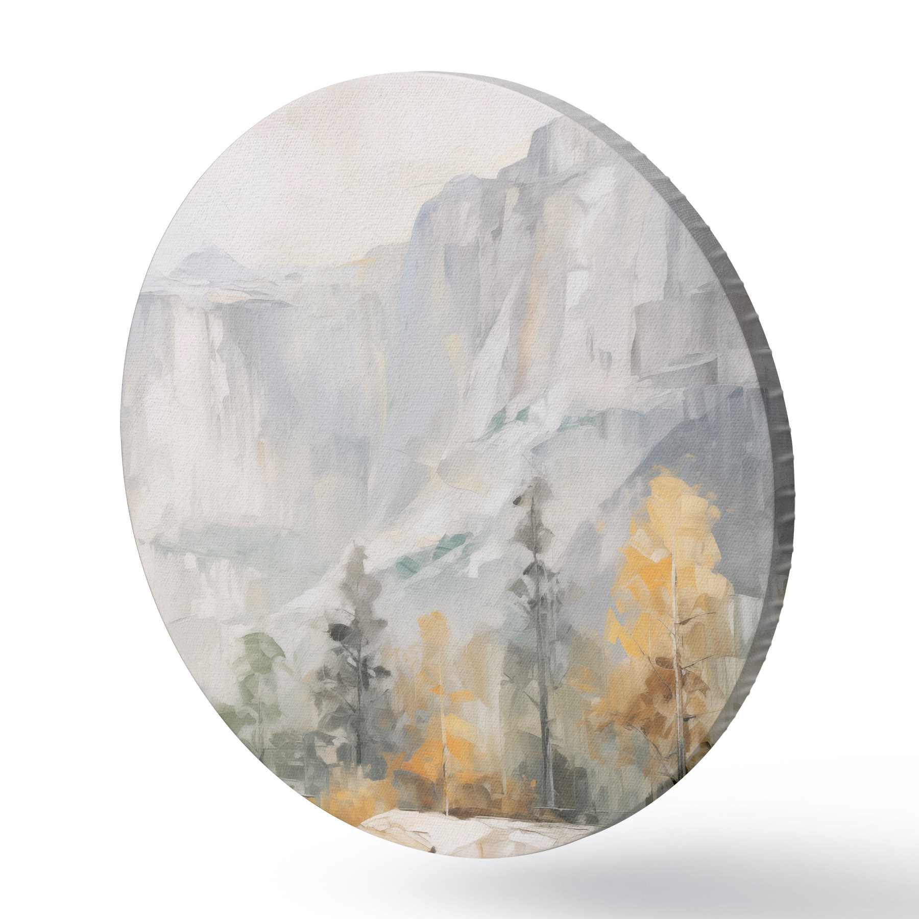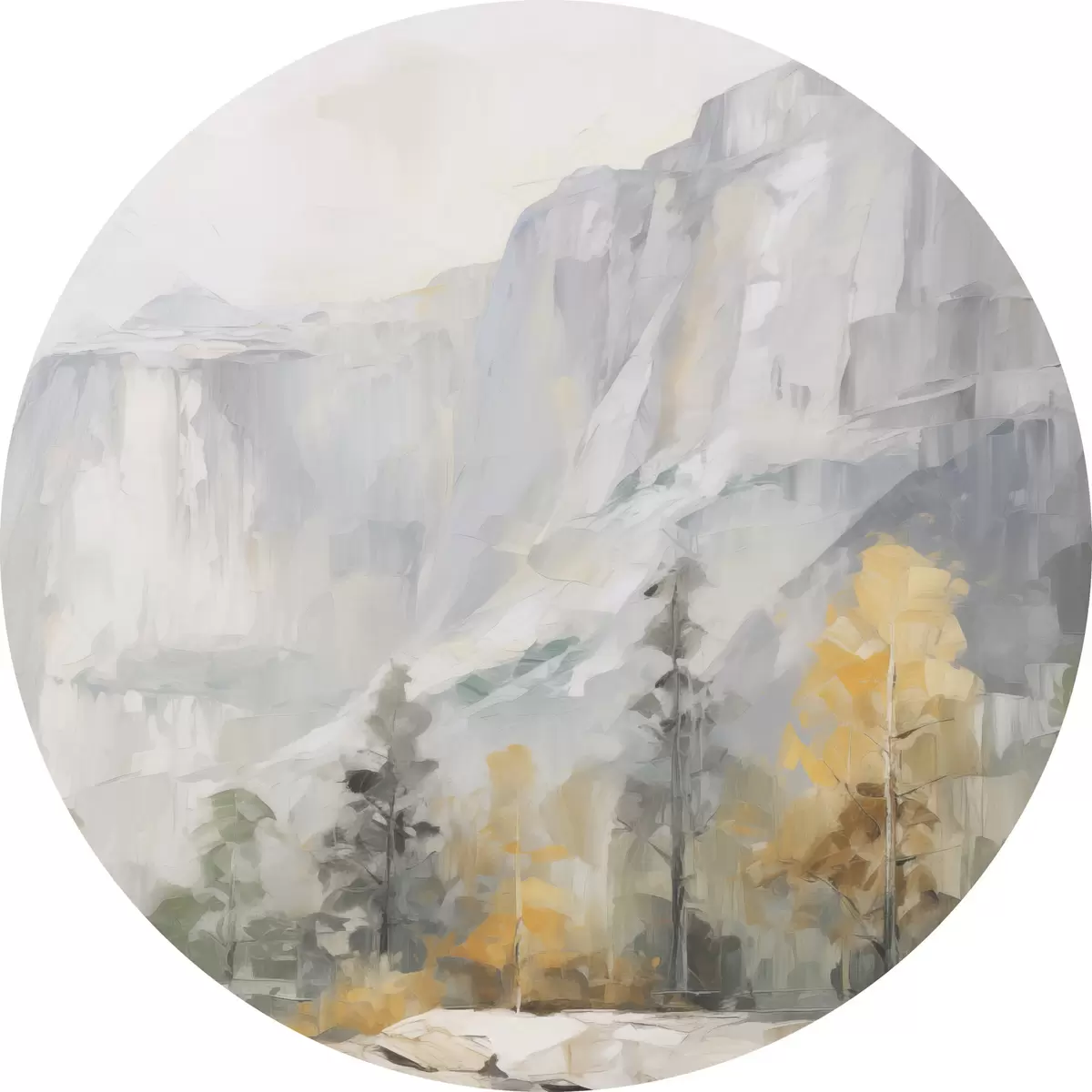 Cuadros redondos Paisaje de un bosque frente a las montañas, imitación de pintura r46299