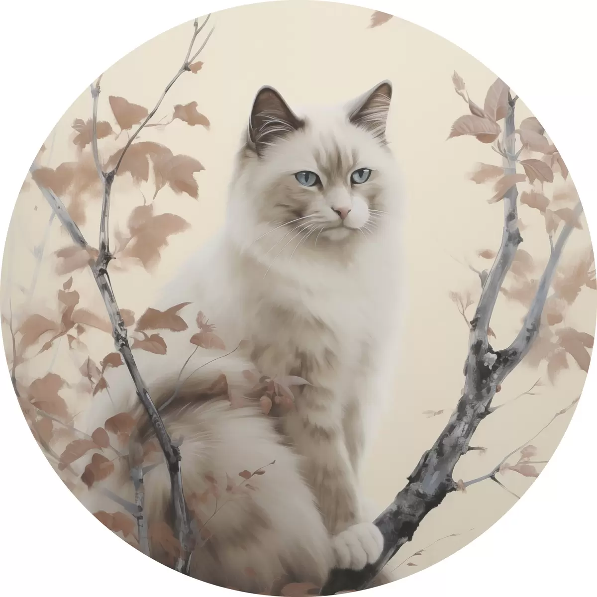 Cuadros redondos El gato está sentado en un árbol r46301