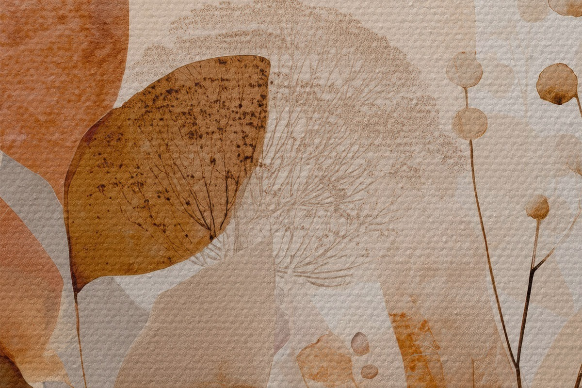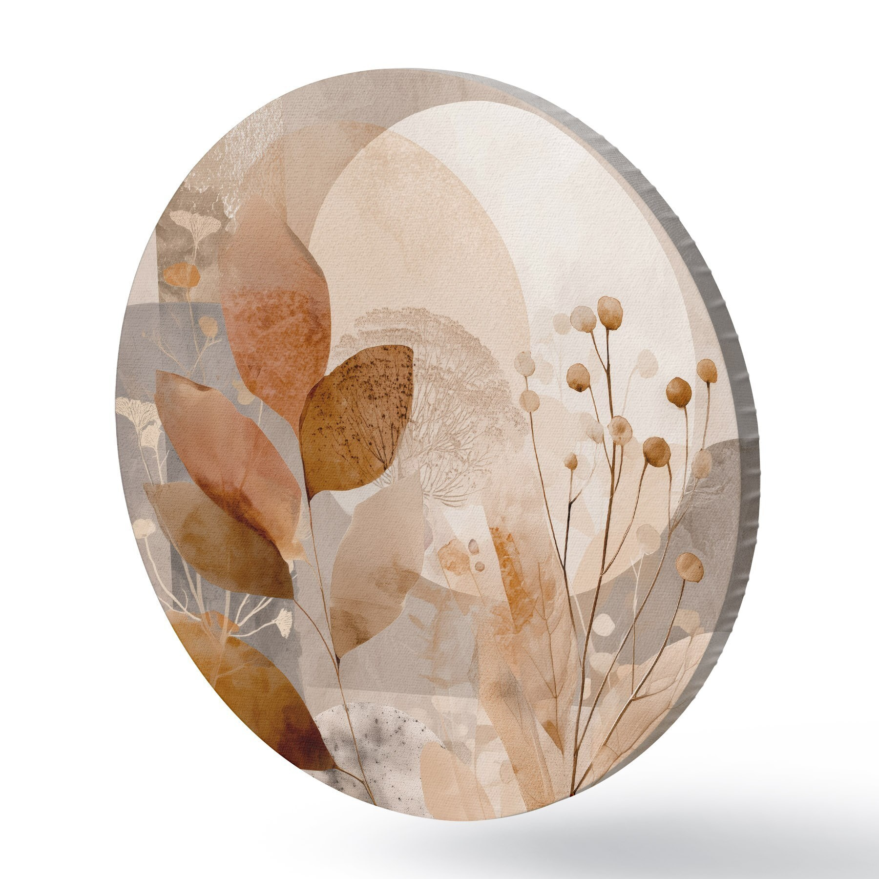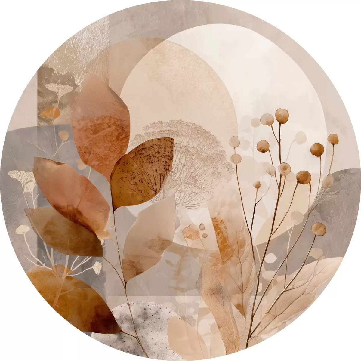 Cuadros redondos Estampado floral en beige y marrón r46308