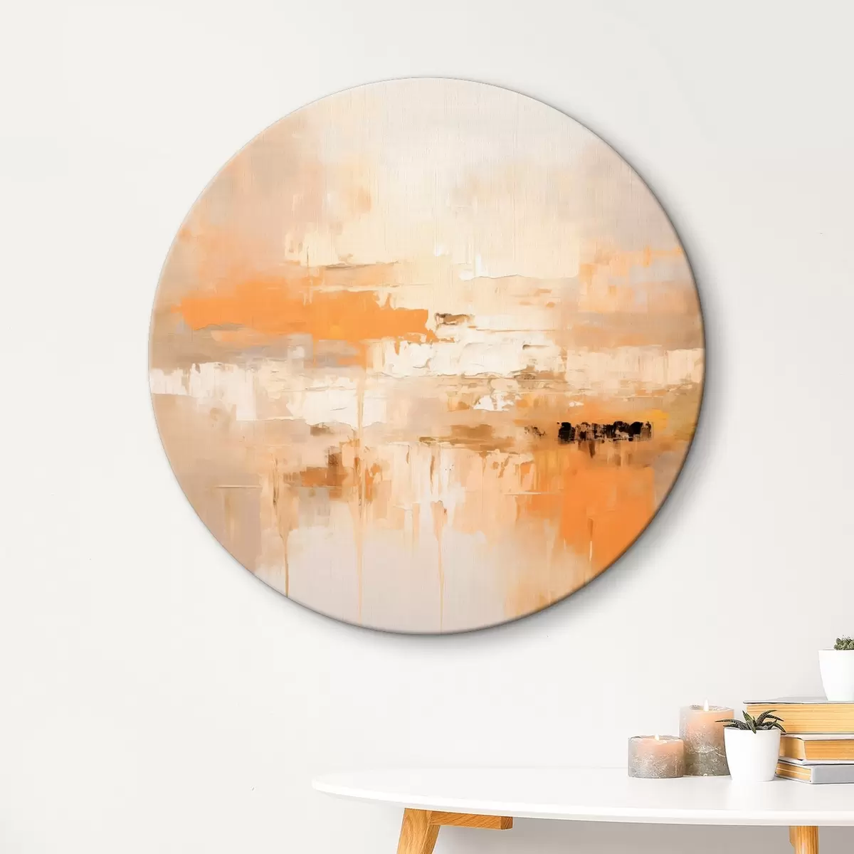 Cuadros redondos Abstracción paisajística en estilo óleo con tonos naranjas y beiges r46314