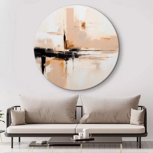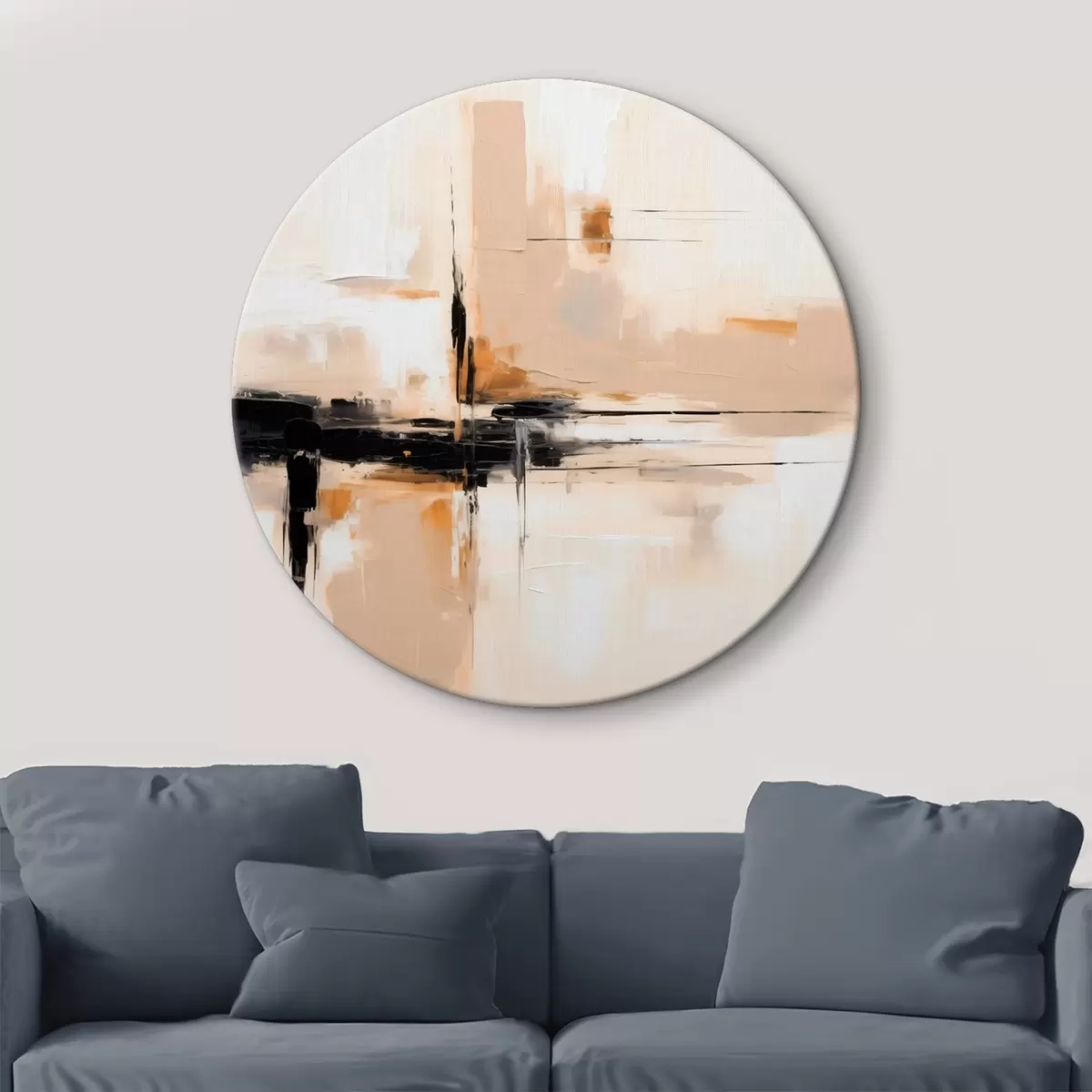 Cuadros redondos Beige y negro, abstracción vertical en estilo minimalista r46326