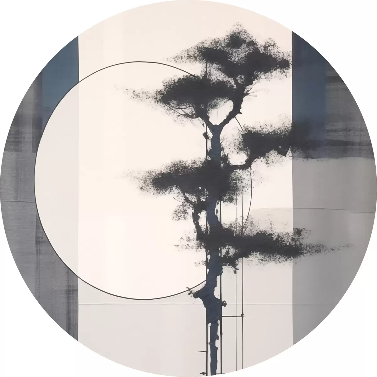 Cuadros redondos Abstracción. Árbol y sol. Minimalismo japonés r46463