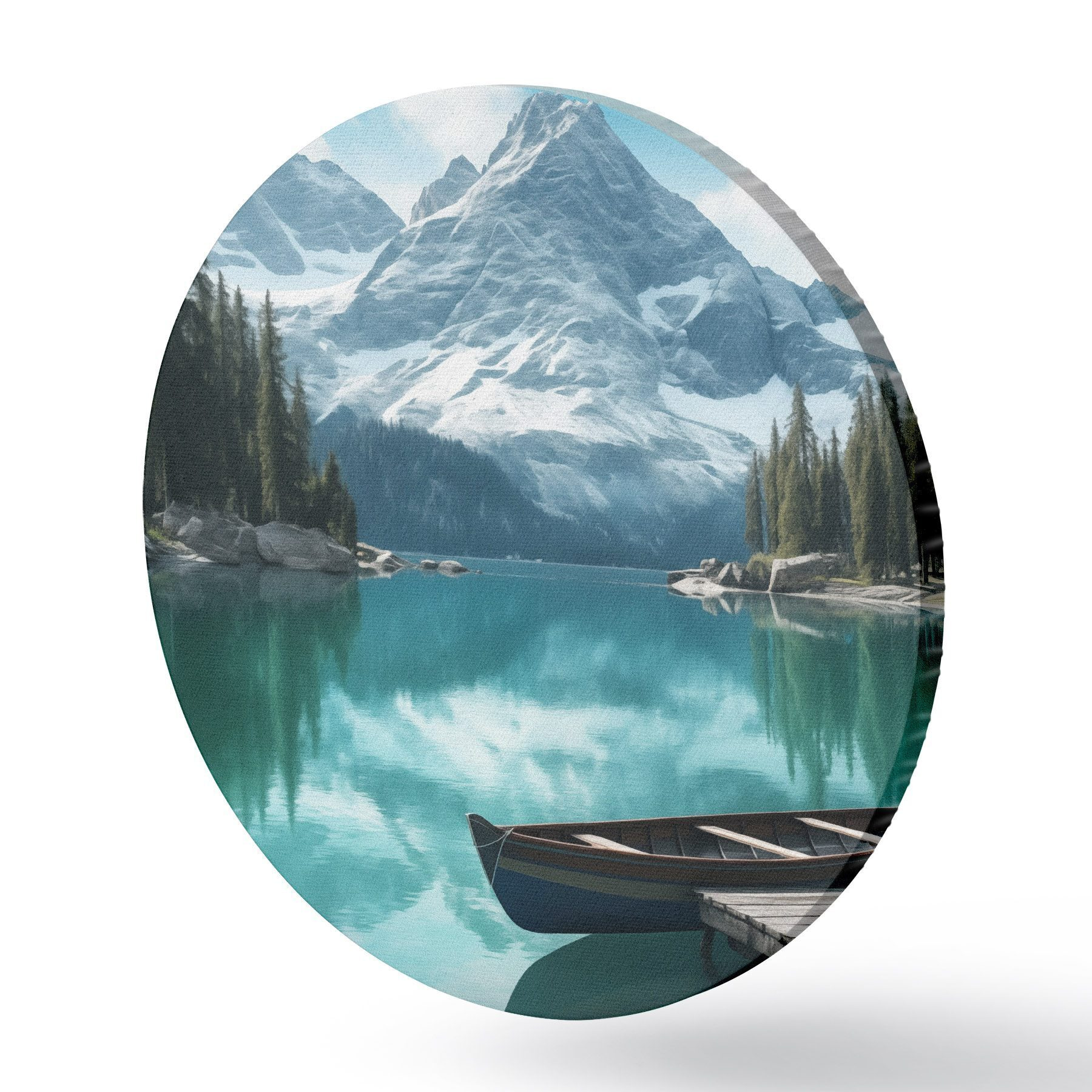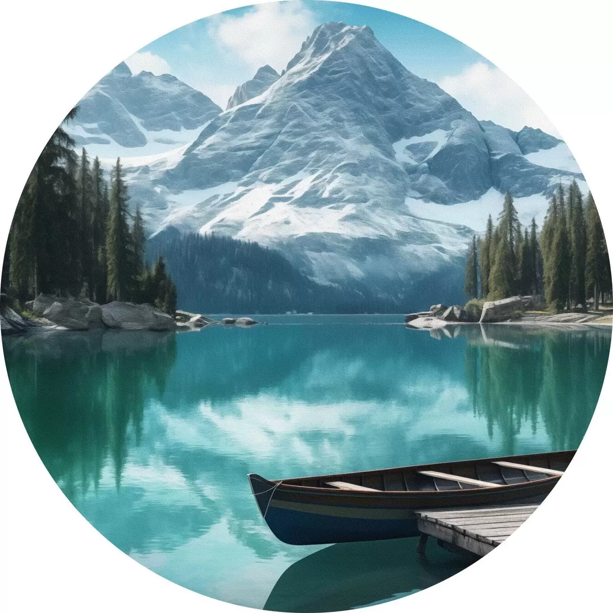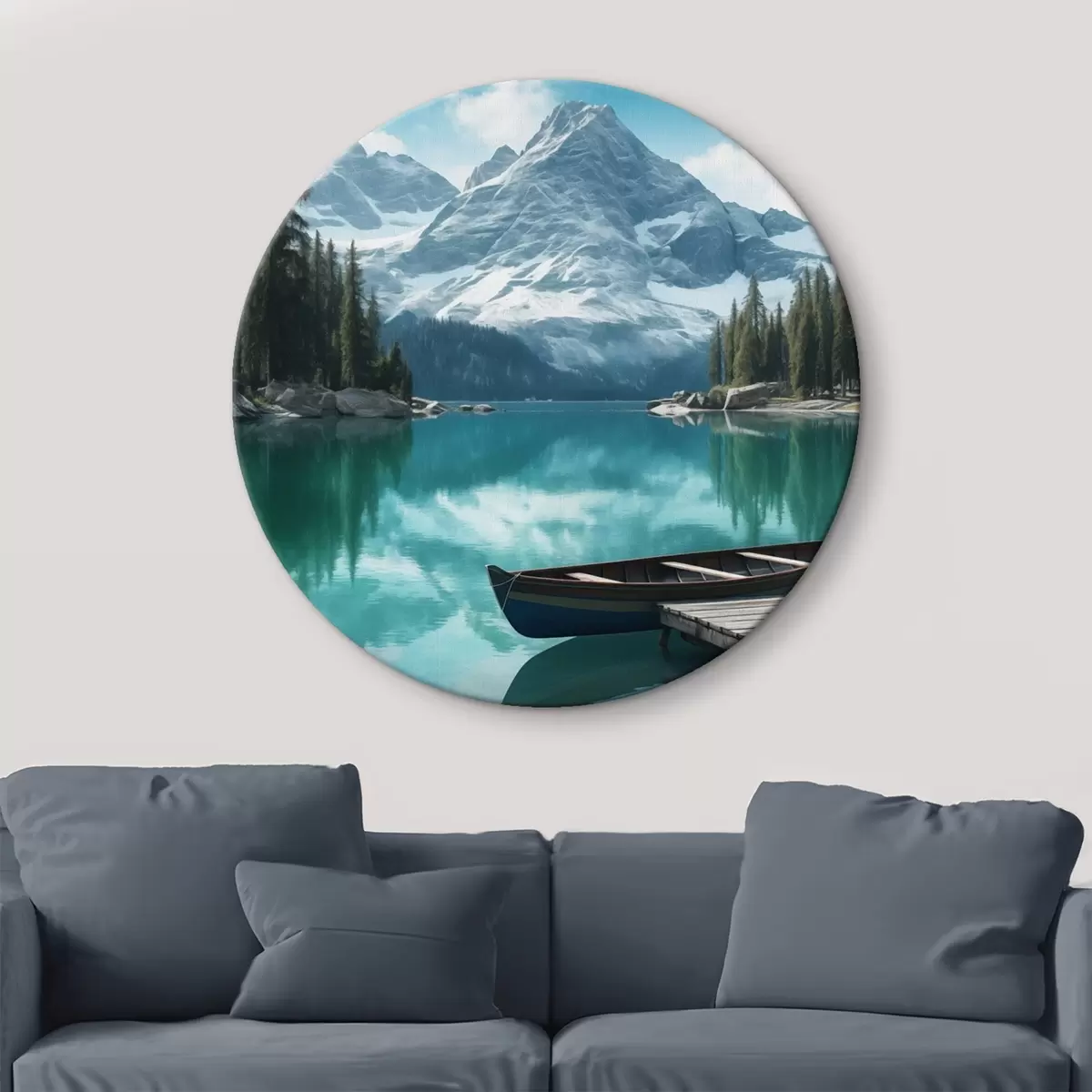 Cuadros redondos Lago alpino con canoa y picos nevados r46481
