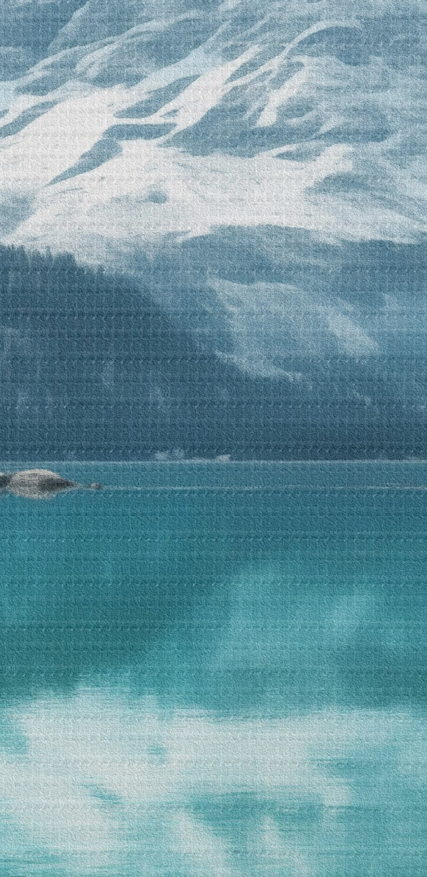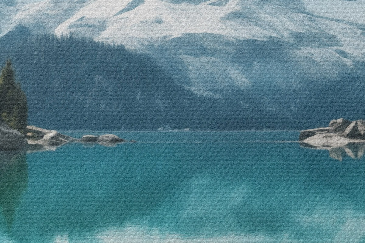 Foto Lago alpino con canoa y picos nevados Nr r46481