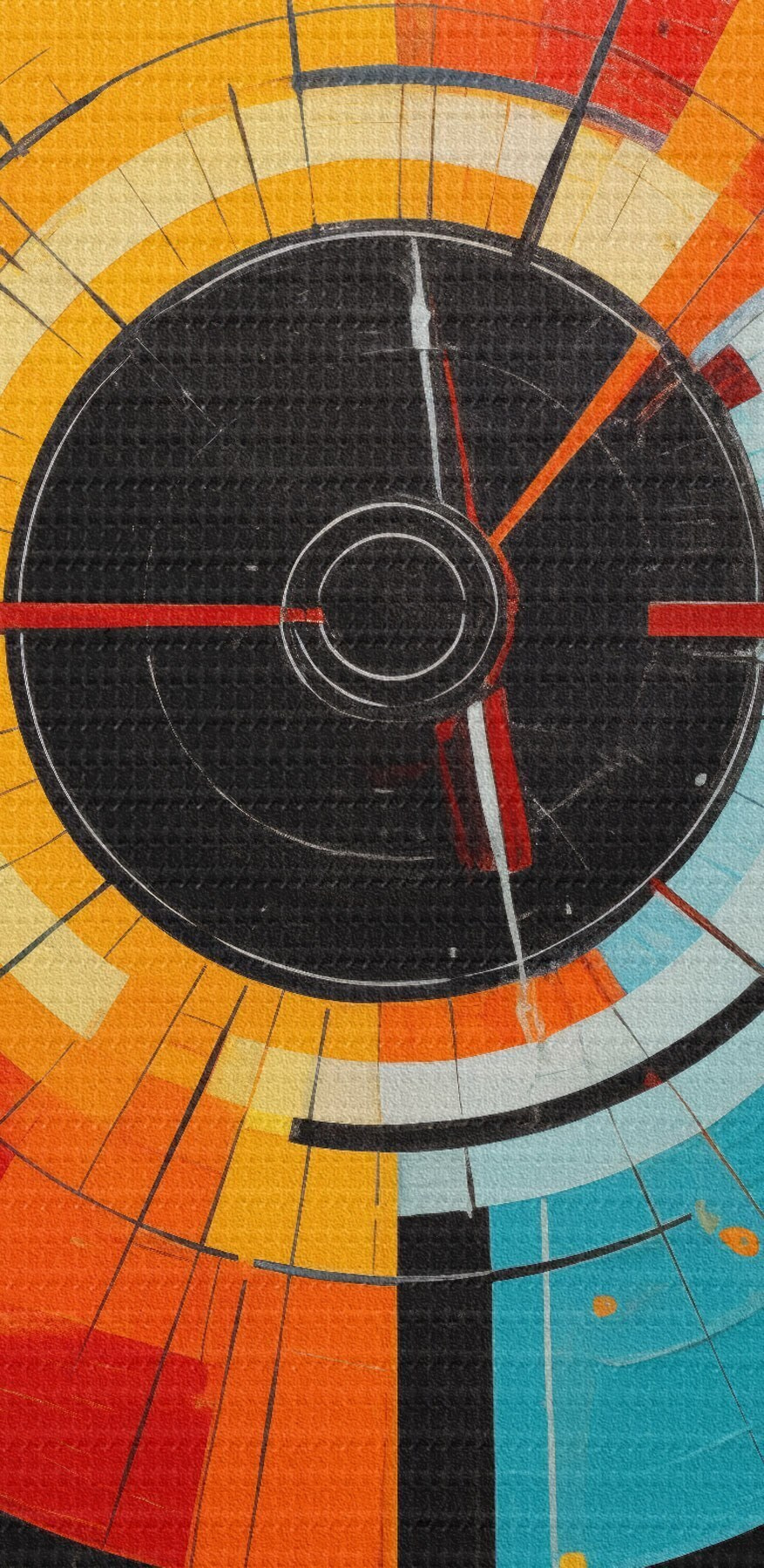 Cuadros redondos Explosión radial en verde azulado, naranja y negro r46485