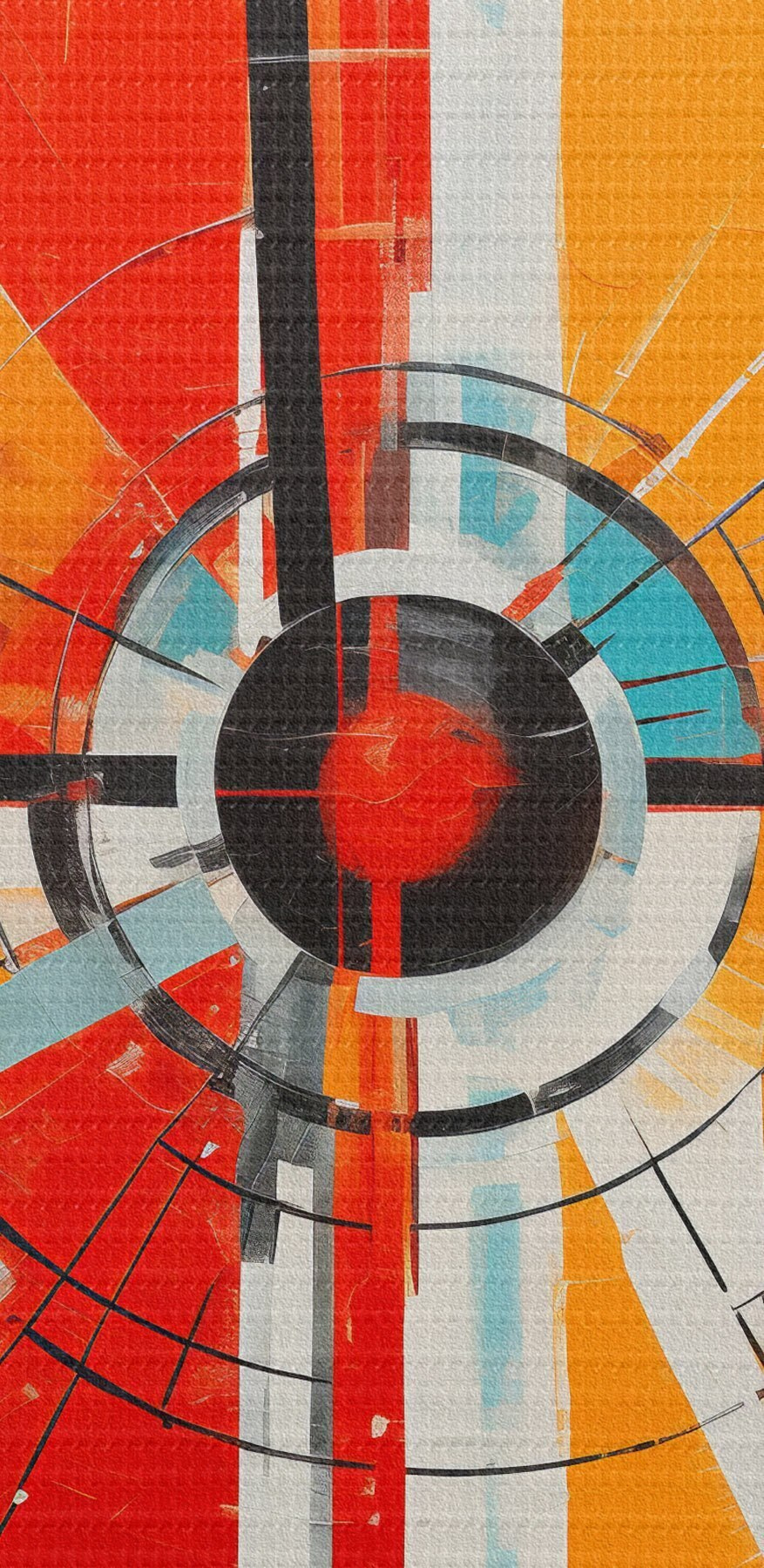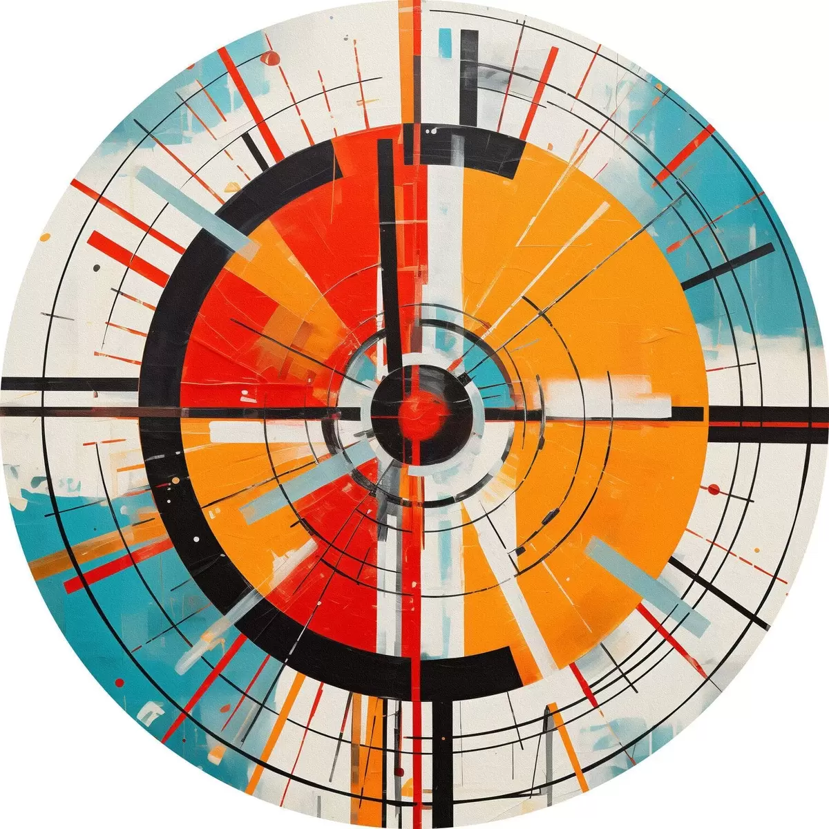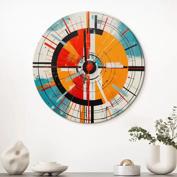 Cuadros redondos Blanco concéntrico con segmentos verde azulado y naranja r46486