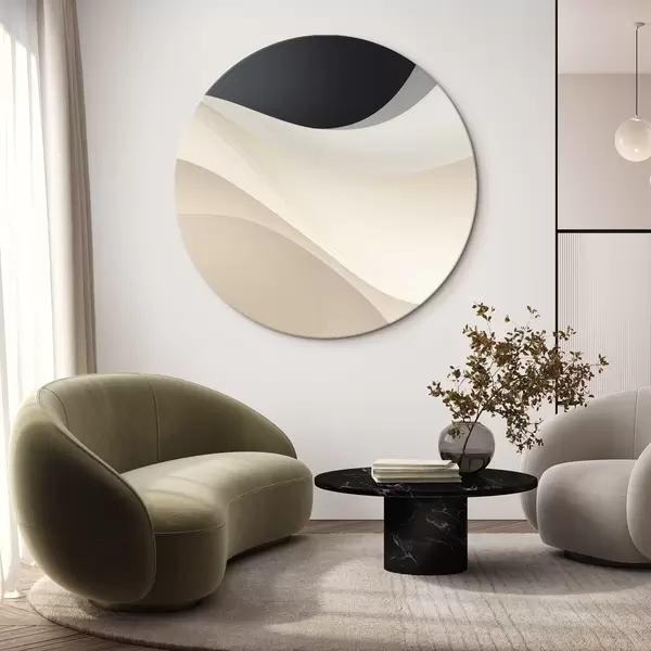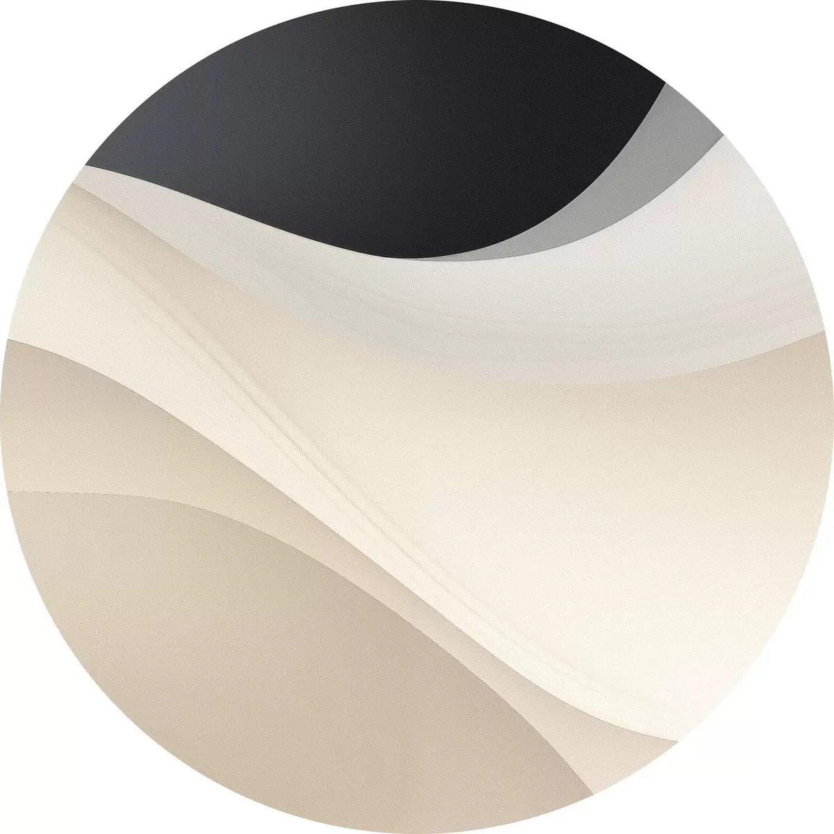 Cuadros redondos Curvas fluidas en capas en negro, crema y gris pardo r46492