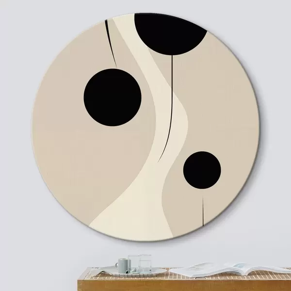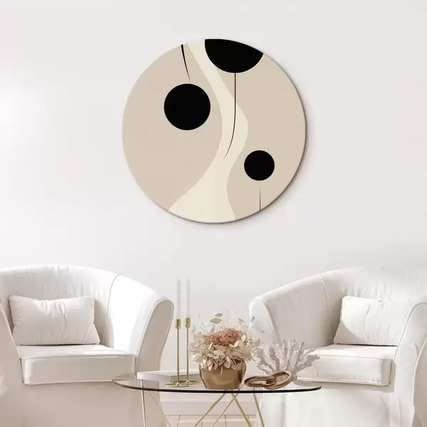 Cuadros redondos Círculos mínimos sobre fondo beige con acentos de líneas fluidas r46496