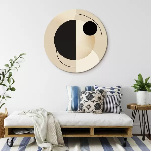 Cuadros redondos Círculos y arcos gráficos en beige suave y negro r46497