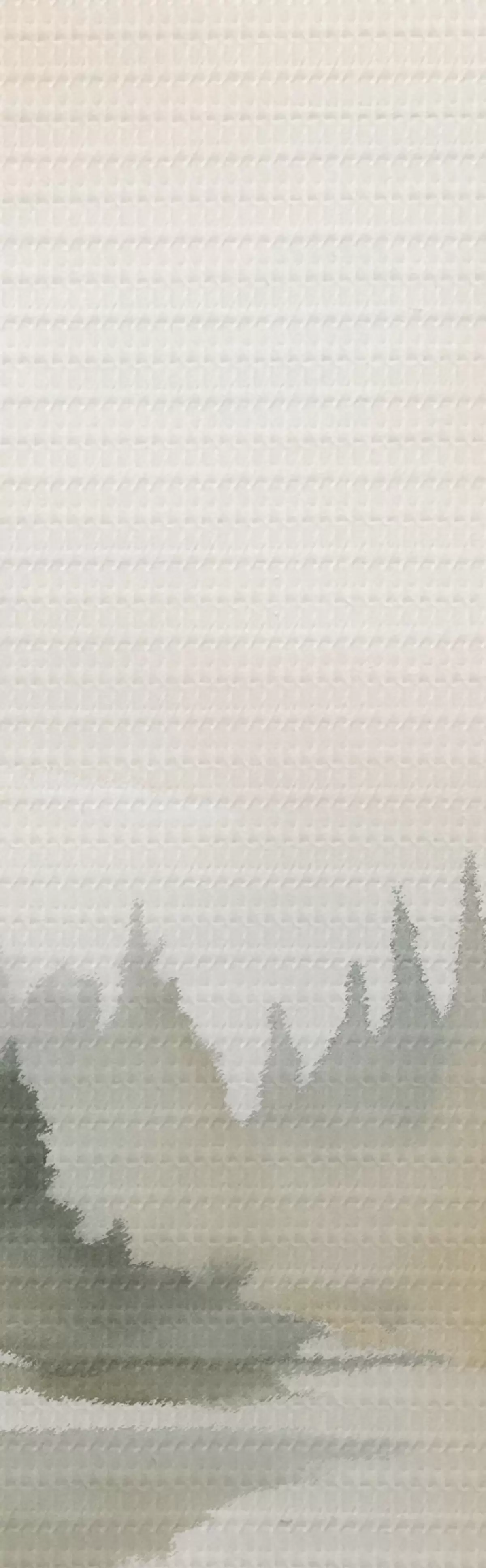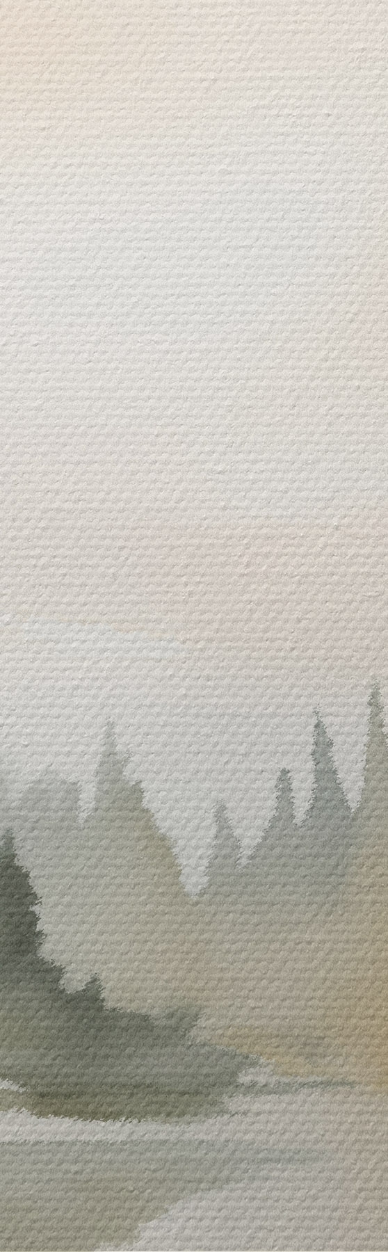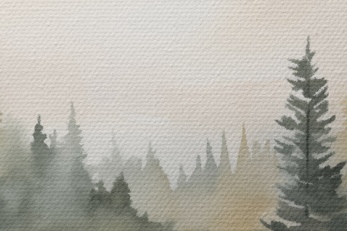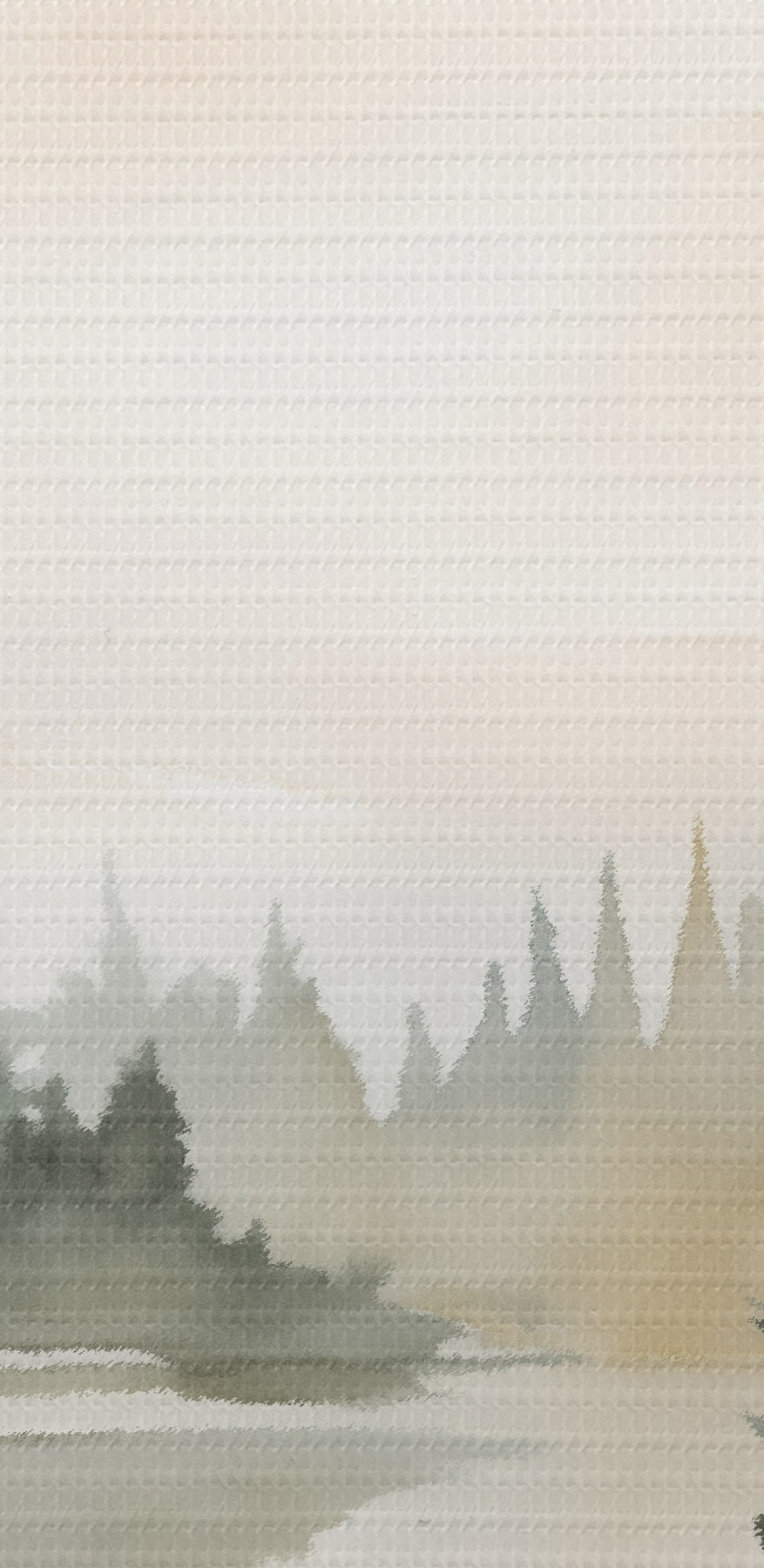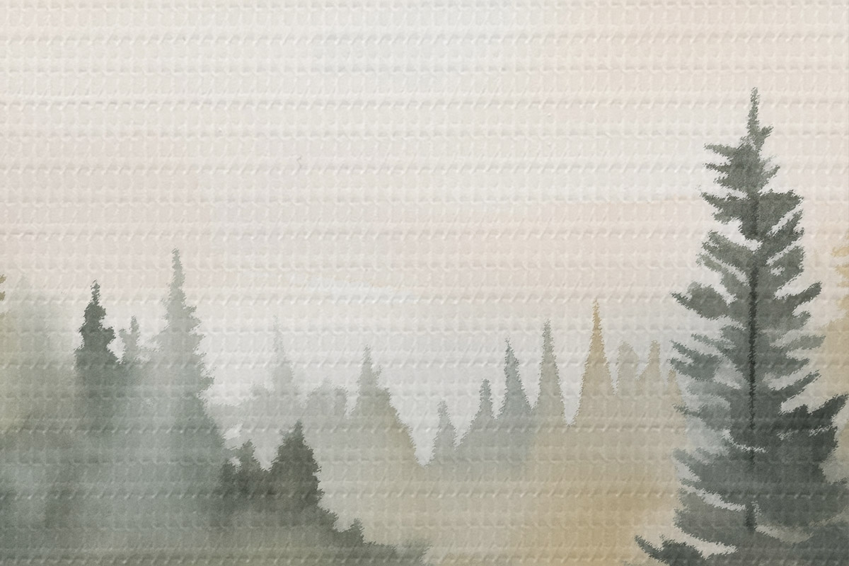 Foto Bosque brumoso de coníferas sobre un río tranquilo, estilo acuarela Nr r46507