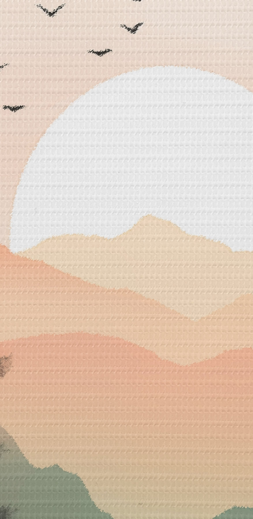 Foto Puesta de sol en tonos pastel sobre un lago tranquilo con colinas lejanas y pájaros Nr r46508