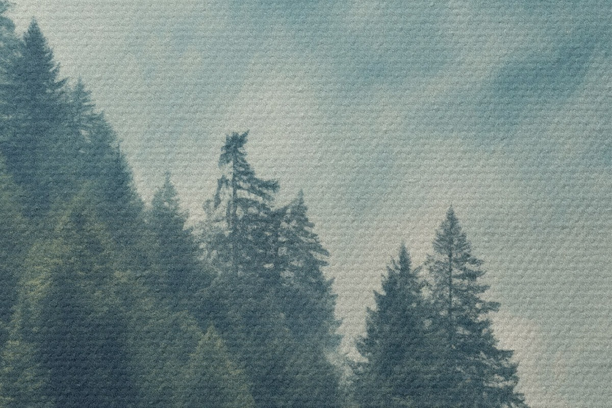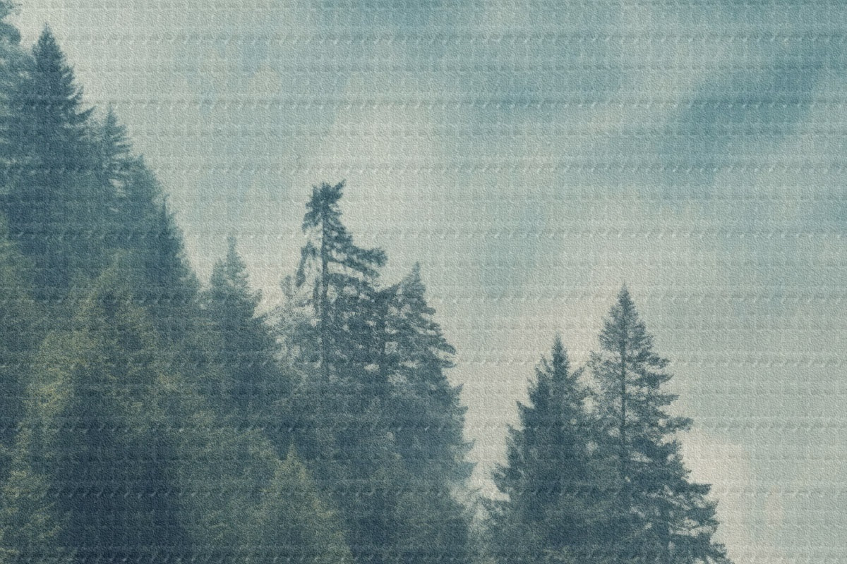 Foto Crestas montañosas brumosas y bosques oscuros de coníferas Nr r46518