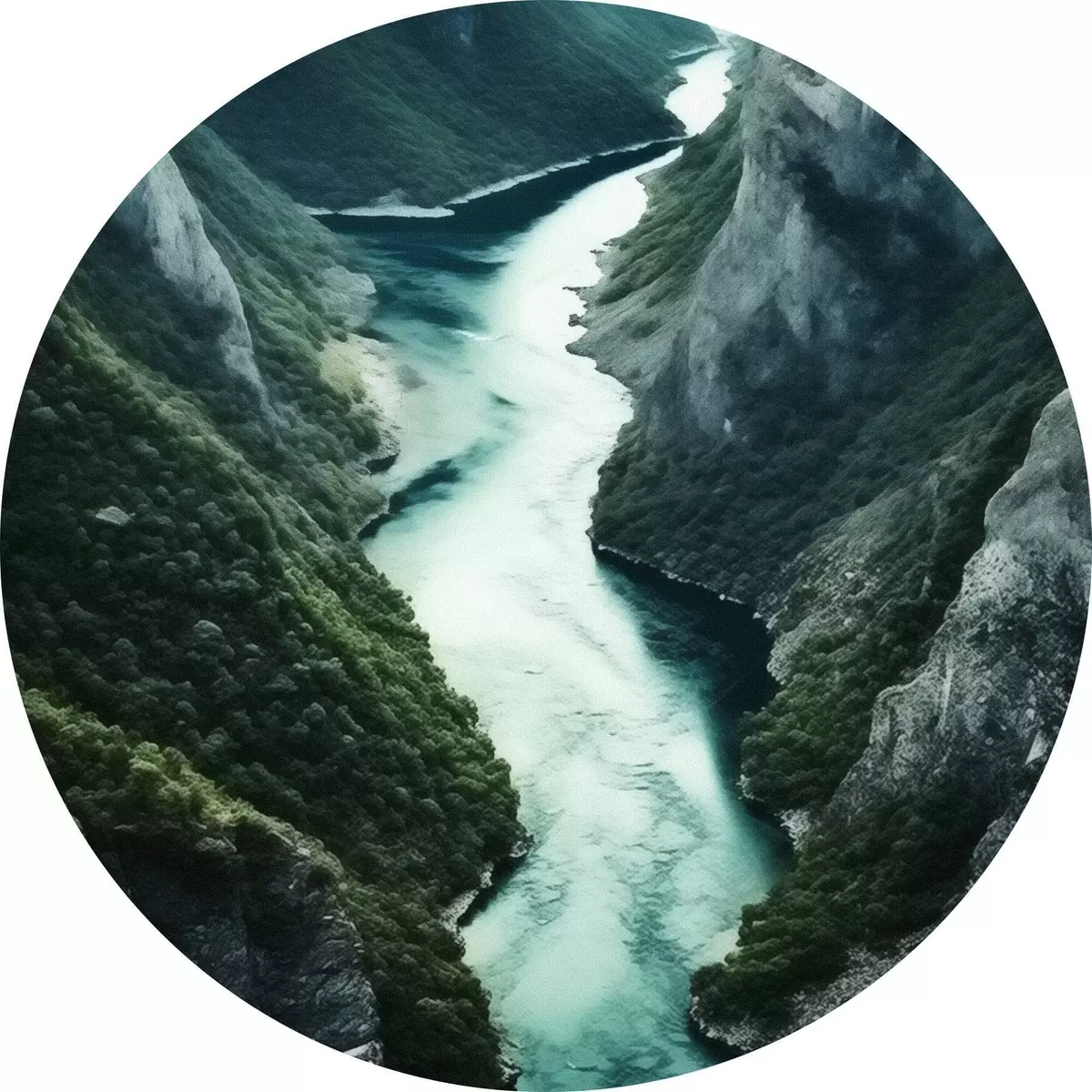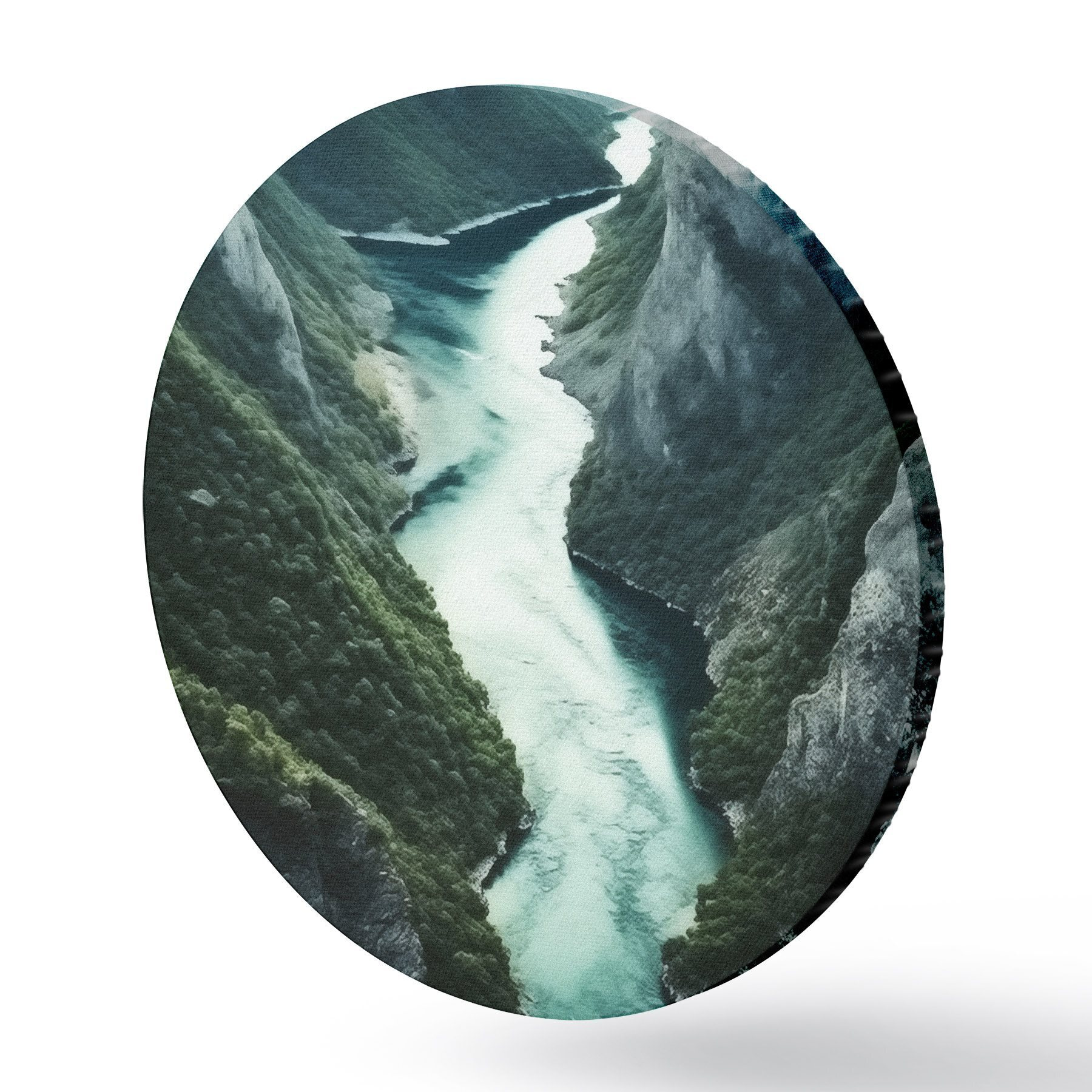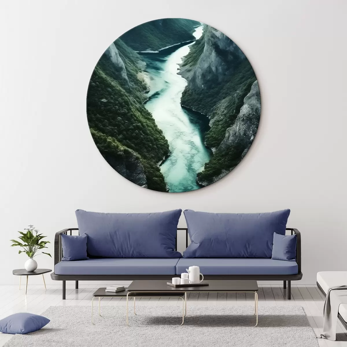 Cuadros redondos Estrecho desfiladero con una corriente turquesa desde arriba r46522