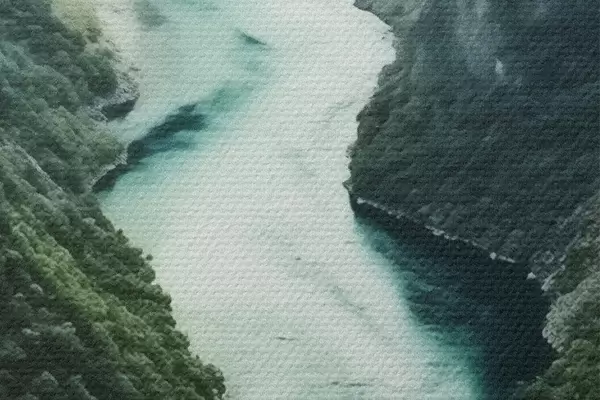 Foto Estrecho desfiladero con una corriente turquesa desde arriba Nr r46522