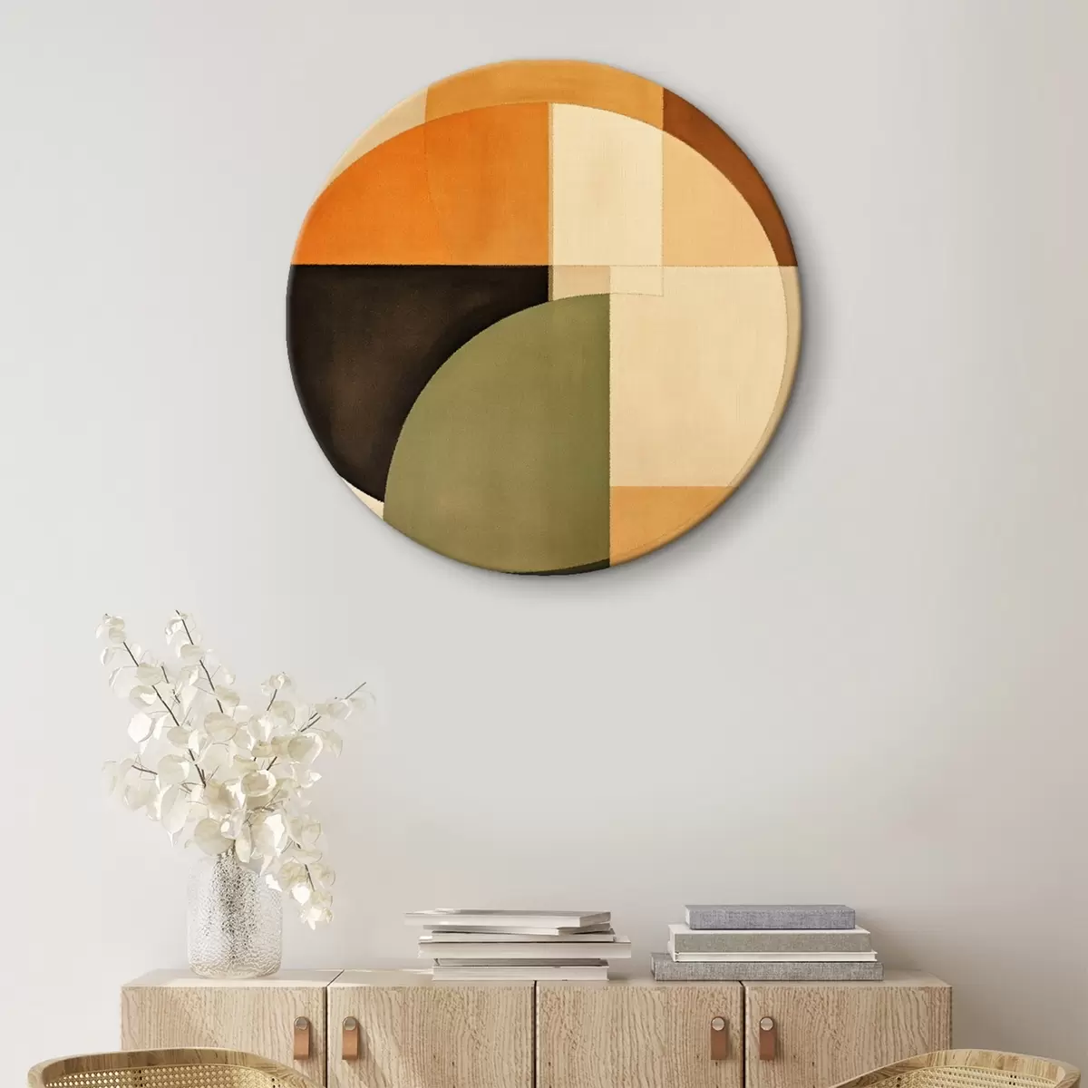 Cuadros redondos Círculos entrecruzados en una paleta de colores arena y oliva r46537