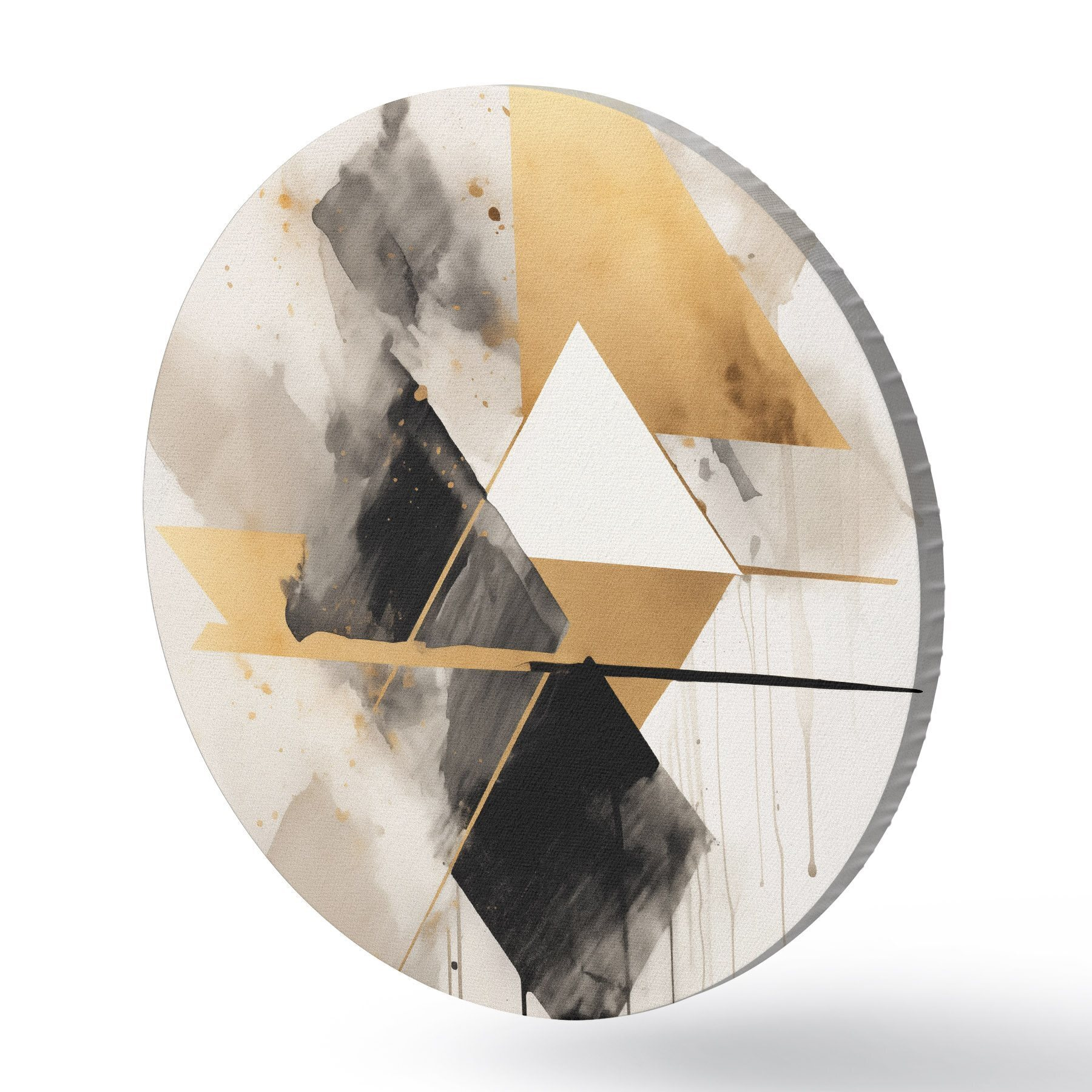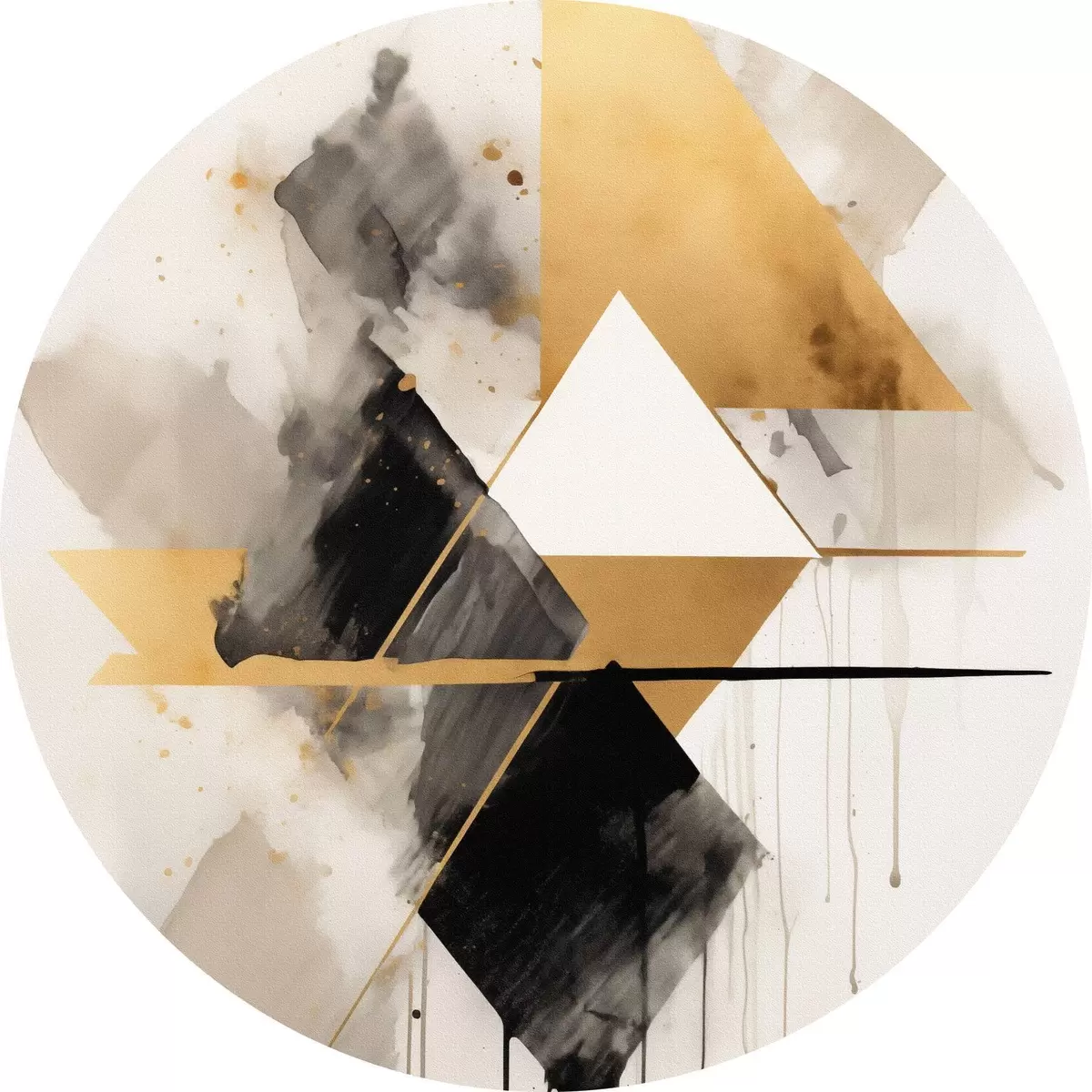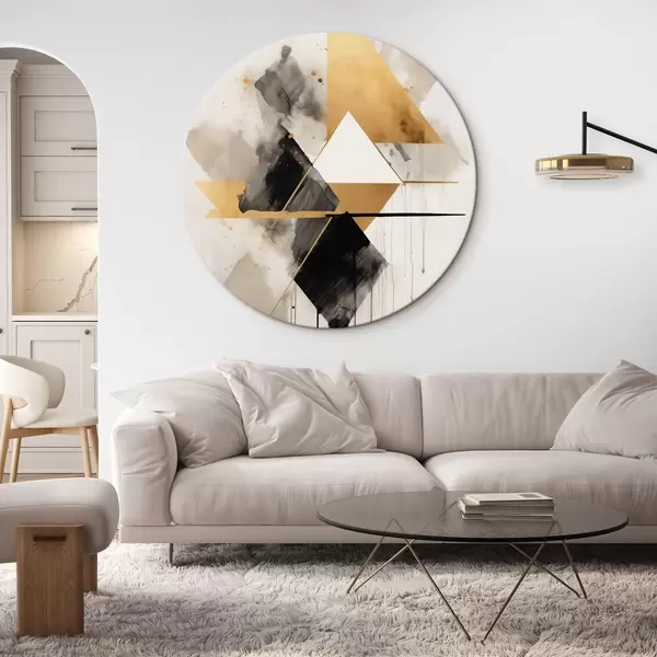 Cuadros redondos Geometría con triángulos y un rombo negro, trazos beige r46539