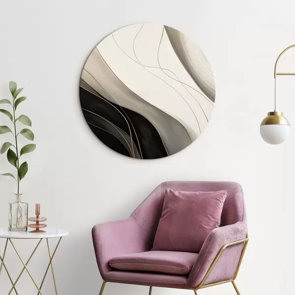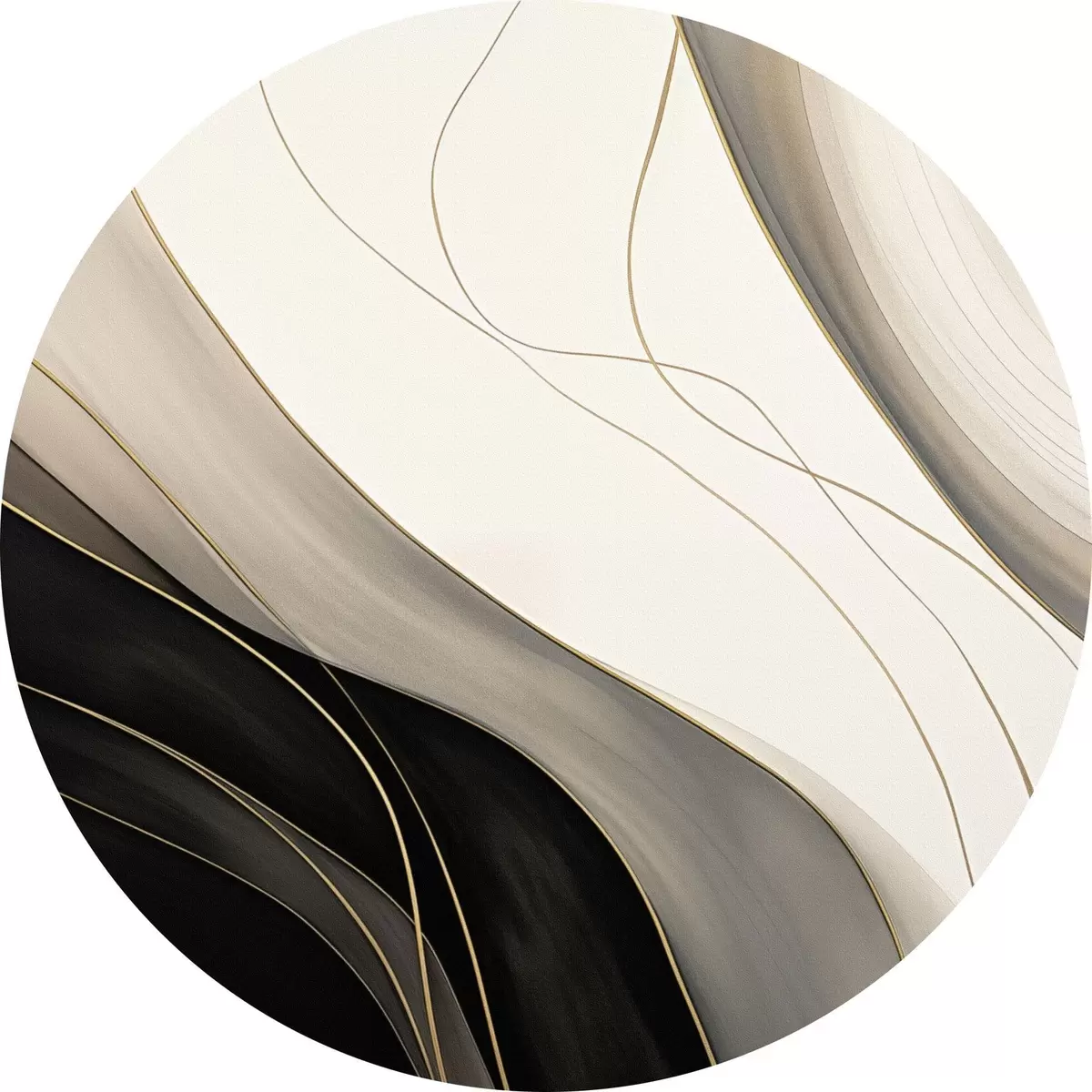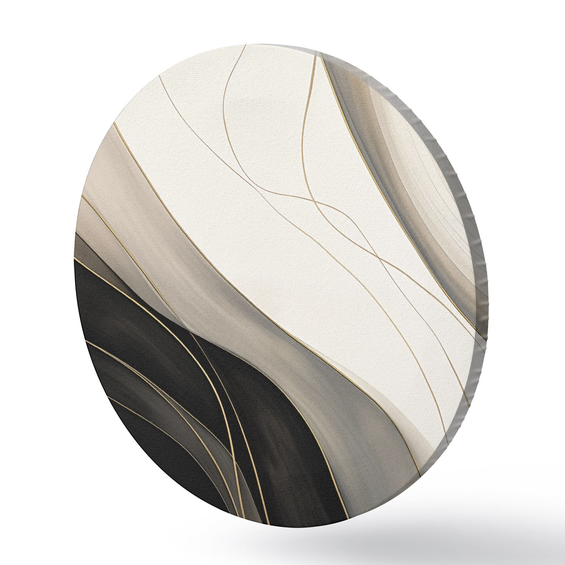 Cuadros redondos Ondas en negro y beige con finas líneas ocres r46541