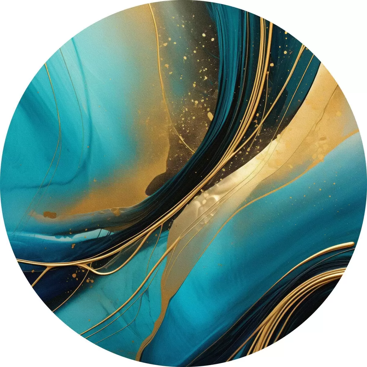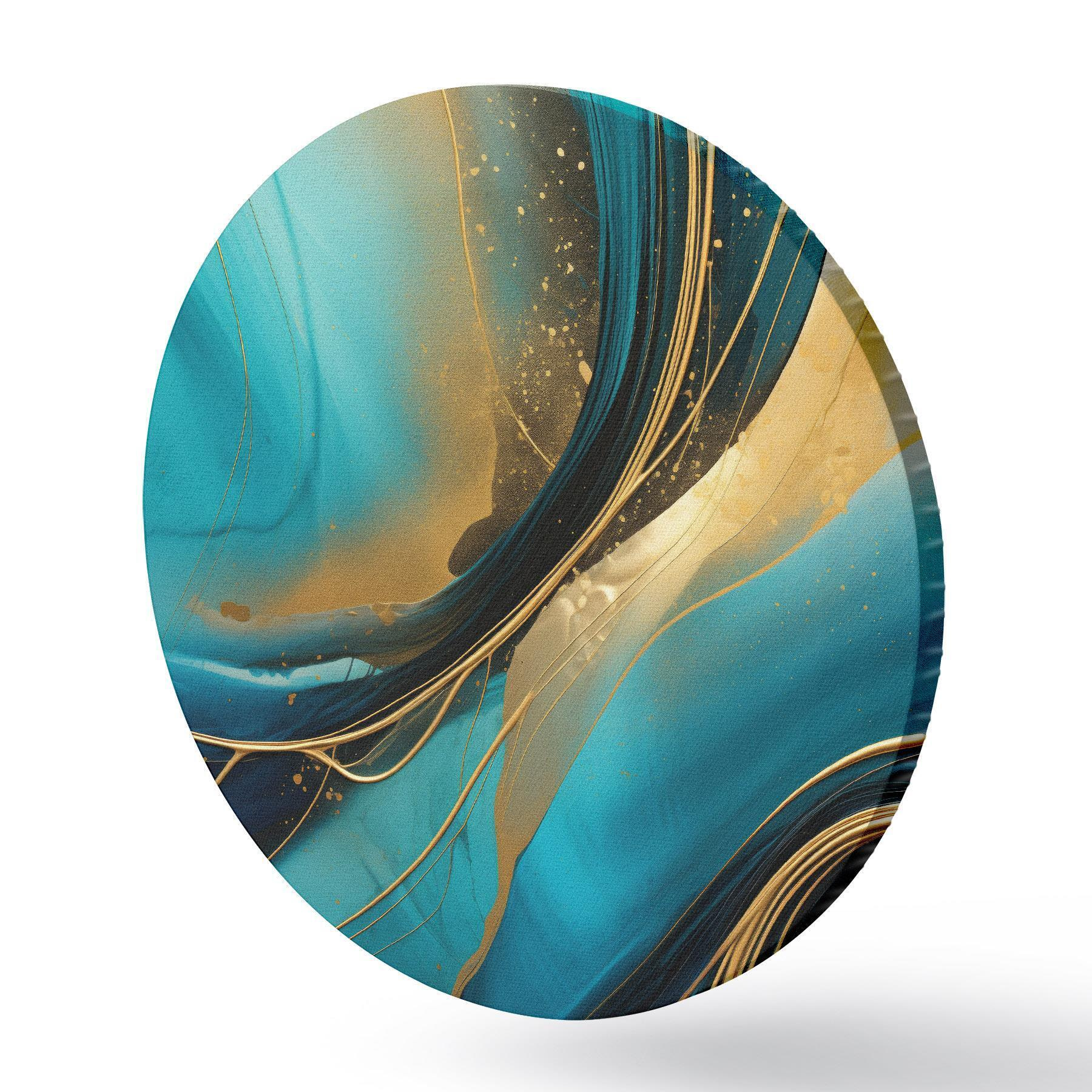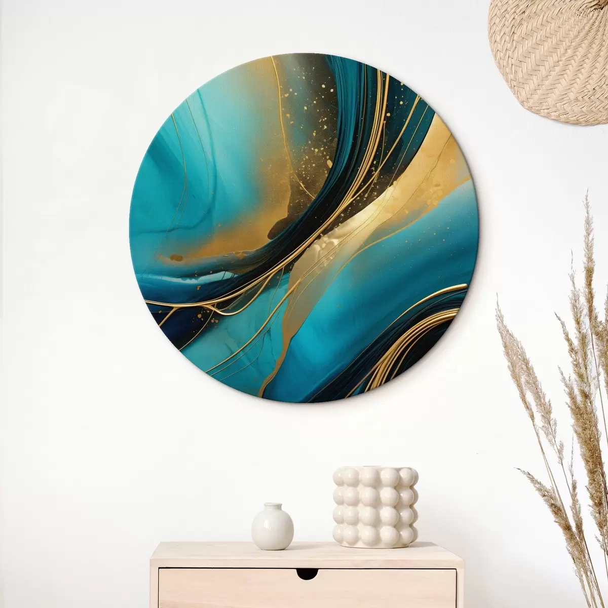 Cuadros redondos Flujo turquesa con finos hilos ocres r46543