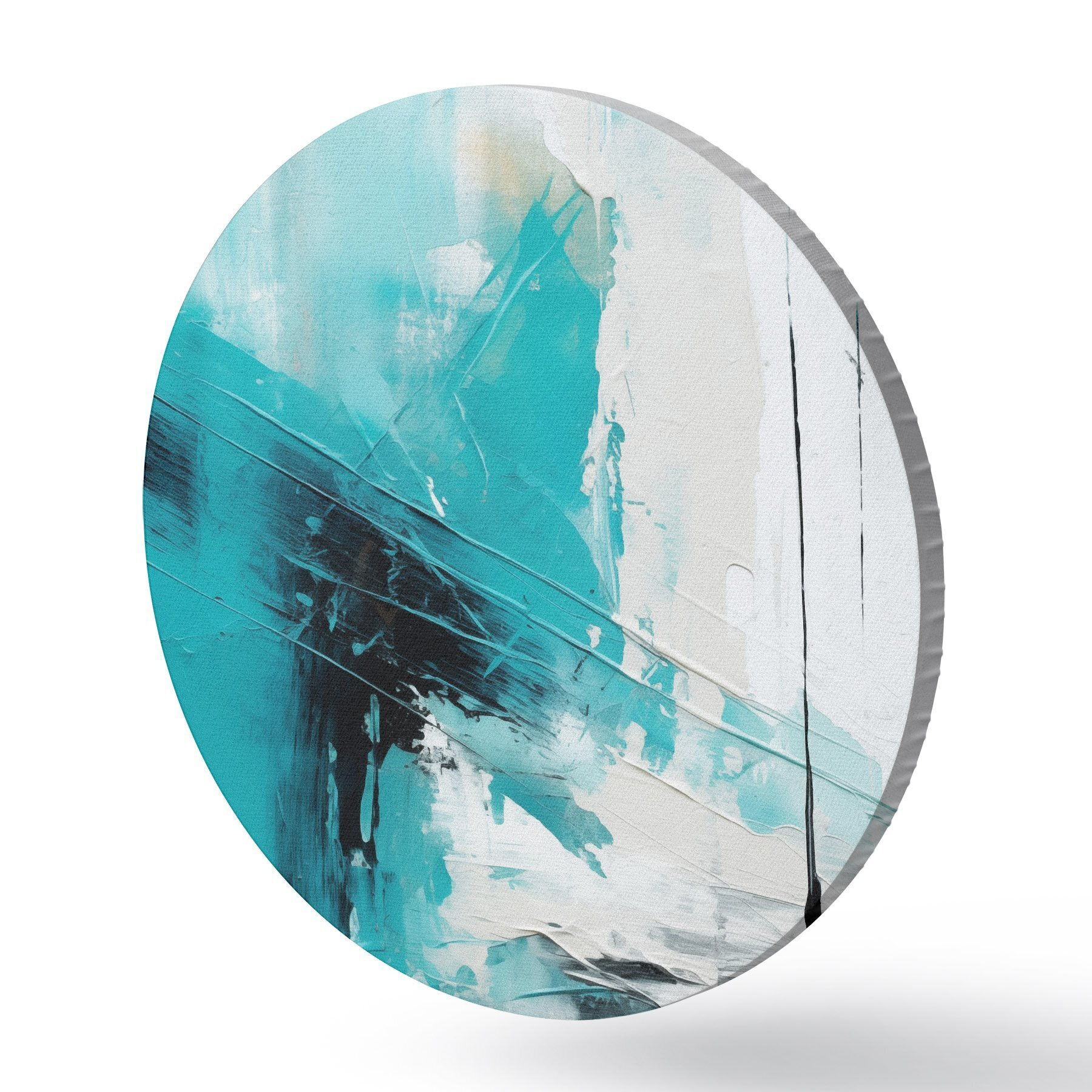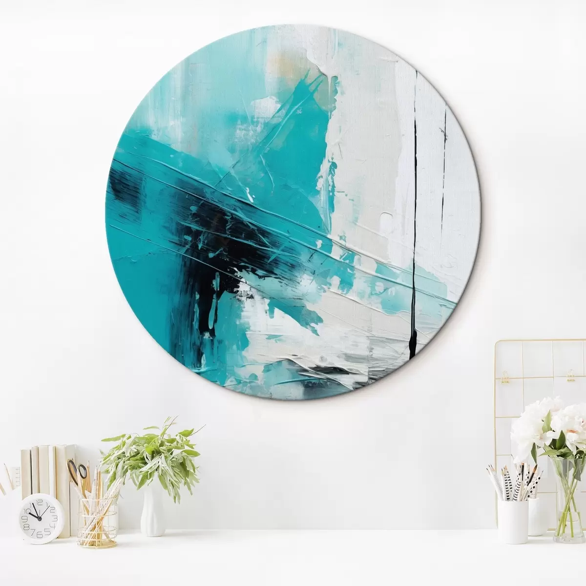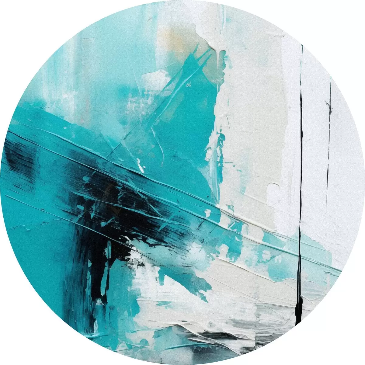 Cuadros redondos Trazos turquesa sobre fondo blanco con un guión negro r46545