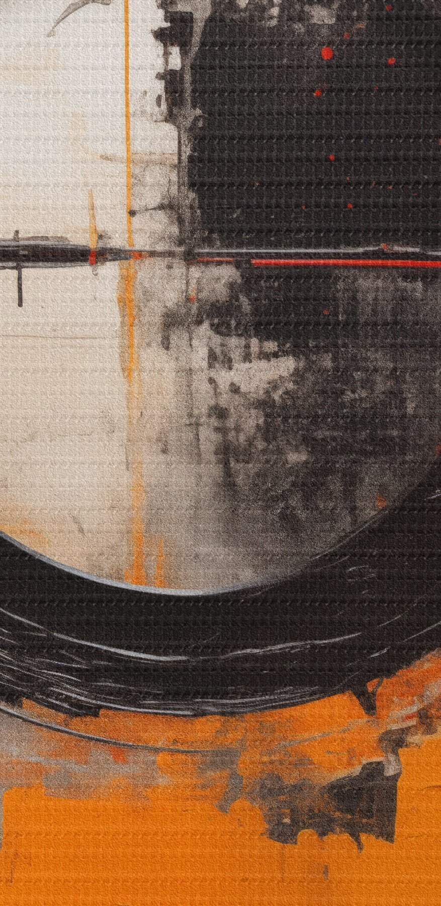 Foto Círculo negro sobre fondo blanco, trazos y salpicaduras naranjas Nr r46549