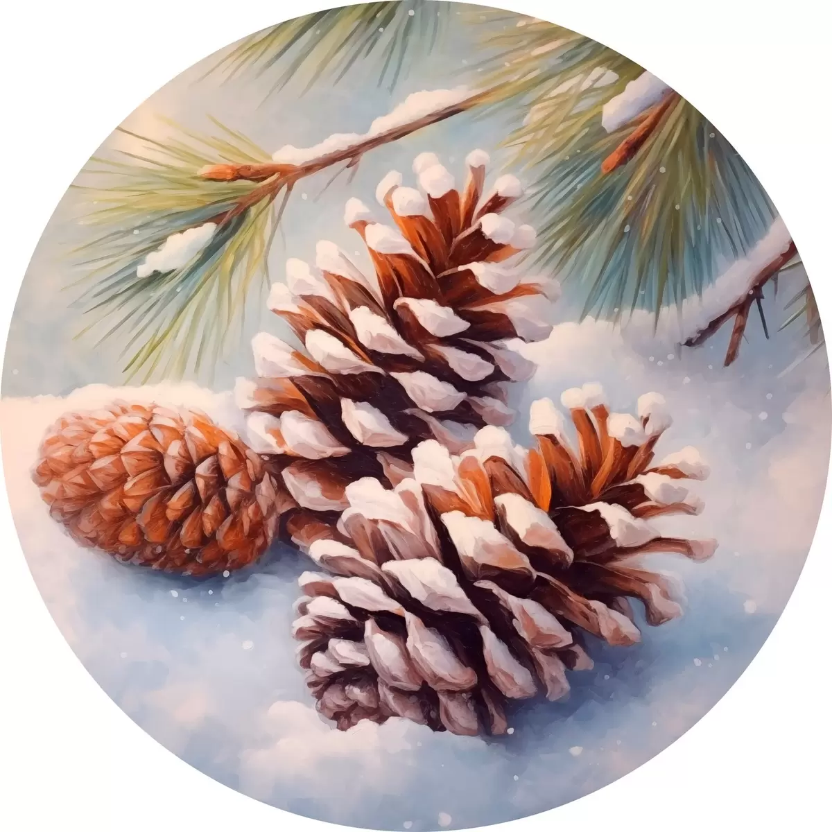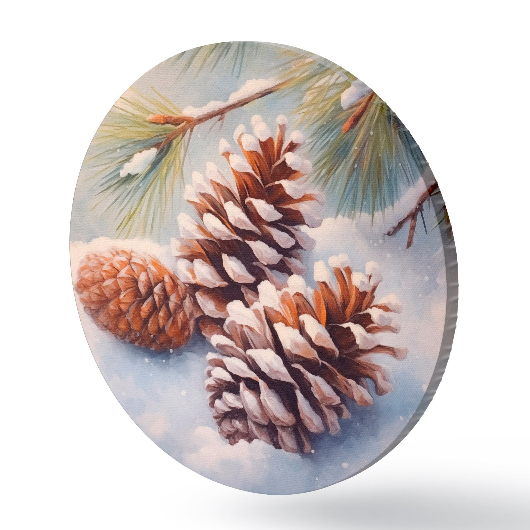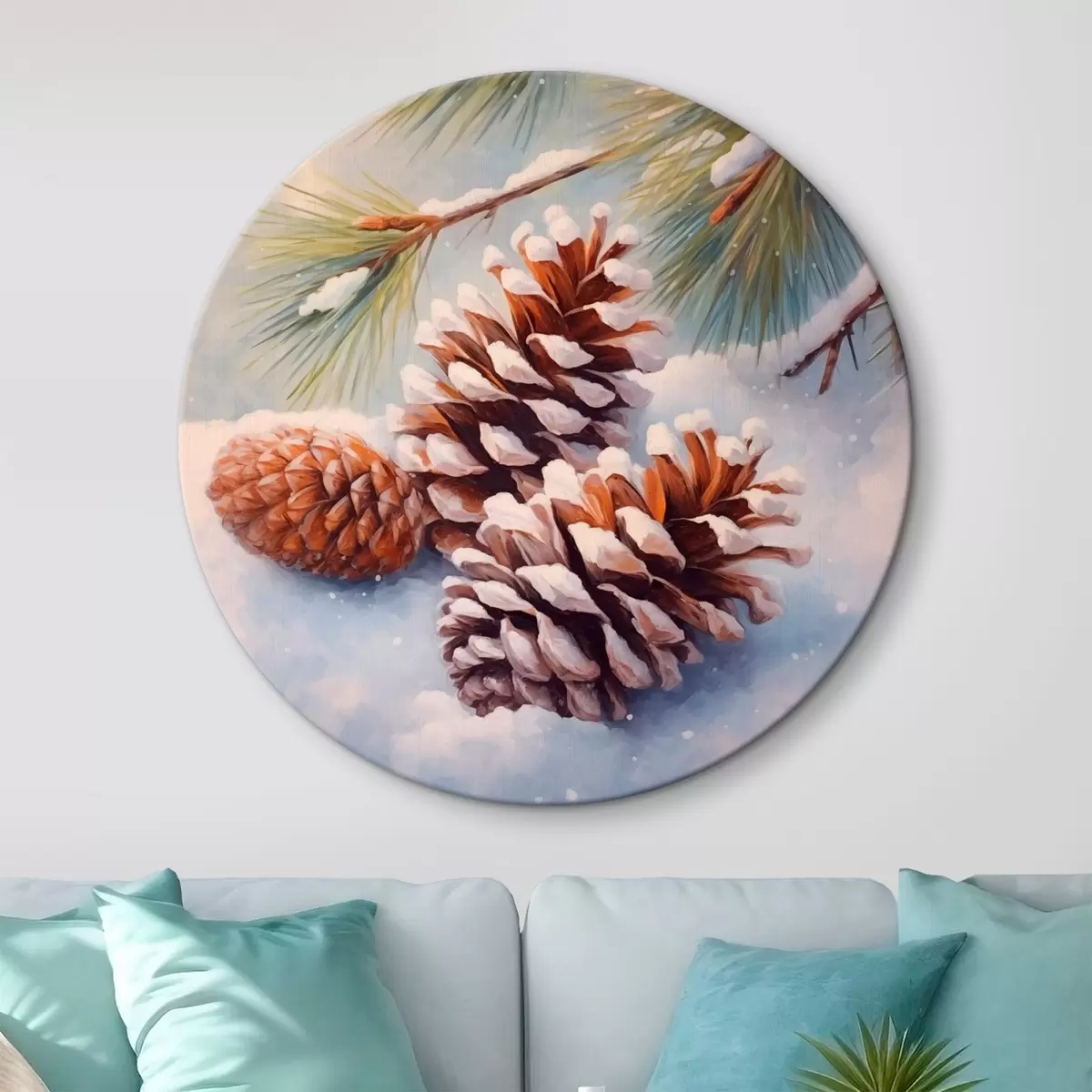 Cuadros redondos Piñas y ramas cubiertas de nieve r46631