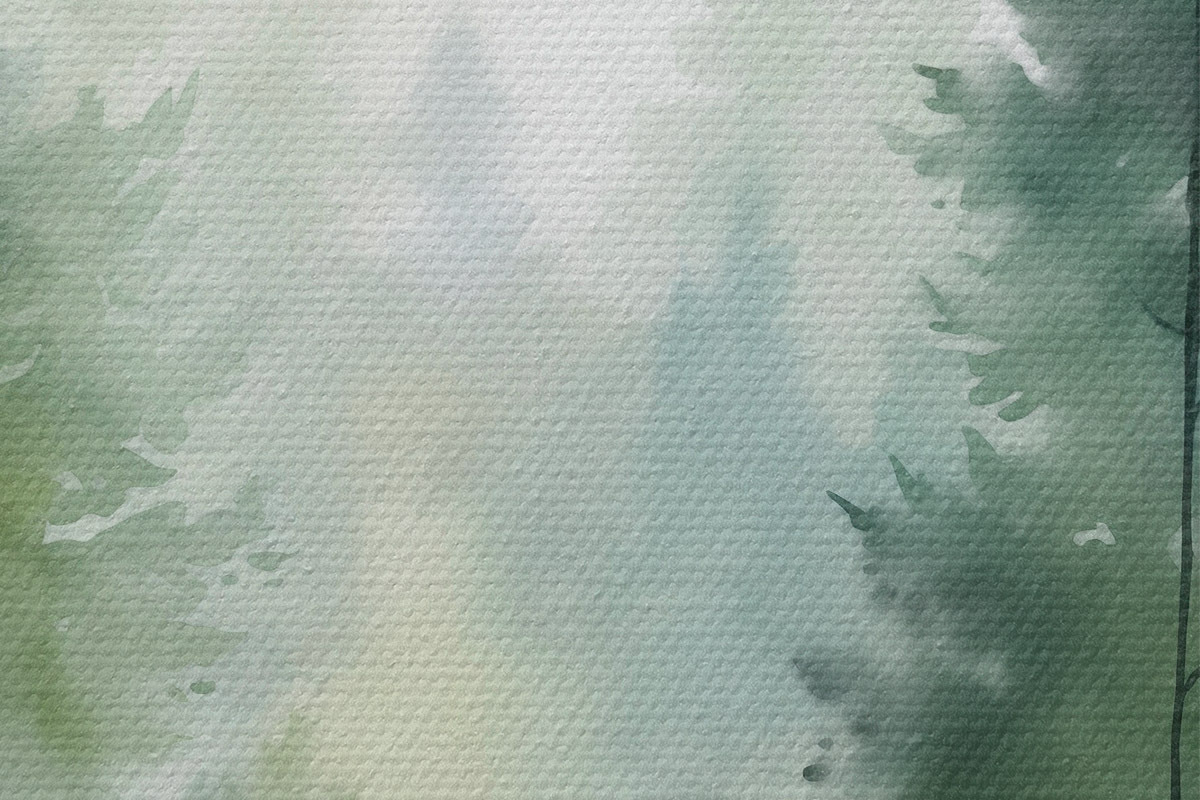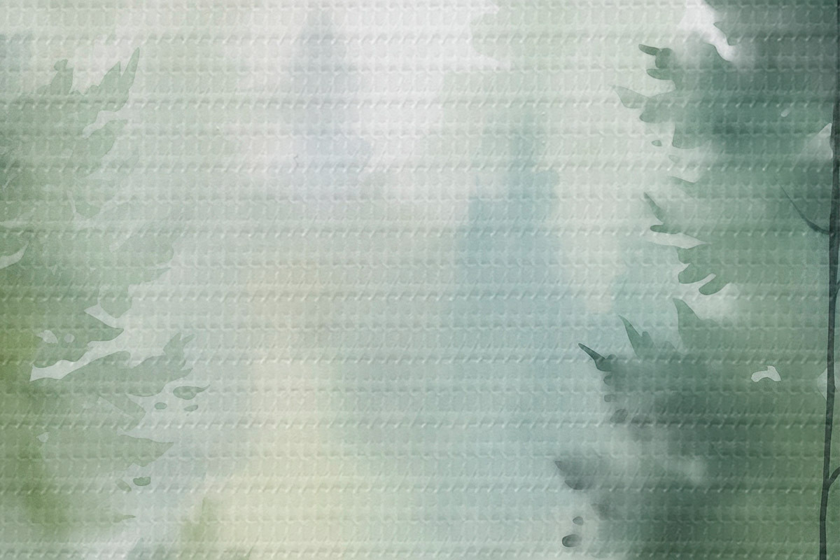 Foto Imitación de pintura en acuarela de un bosque brumoso con altos pinos y montañas al fondo Nr r46690