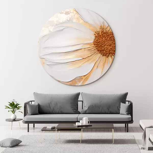 Cuadros redondos Una flor blanca con pétalos delicados, fondo abstracto con textura, elegante, arte decorativo r46692