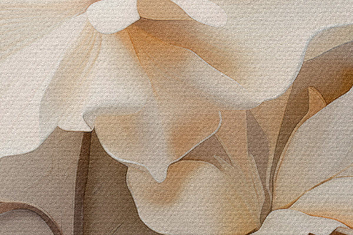 Foto Flores blancas, pétalos con sombras suaves, fondo beige claro, composición elegante, estilo minimalista Nr r46700