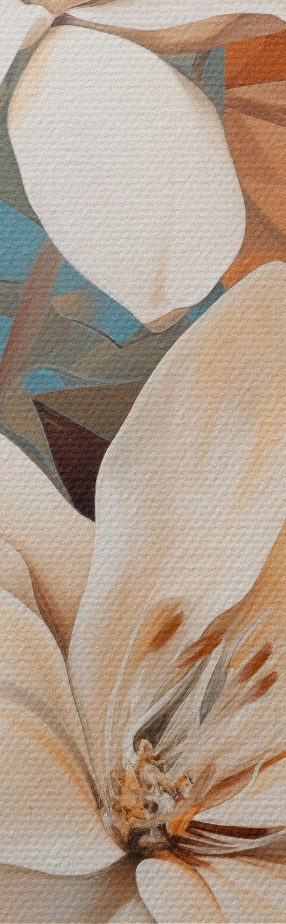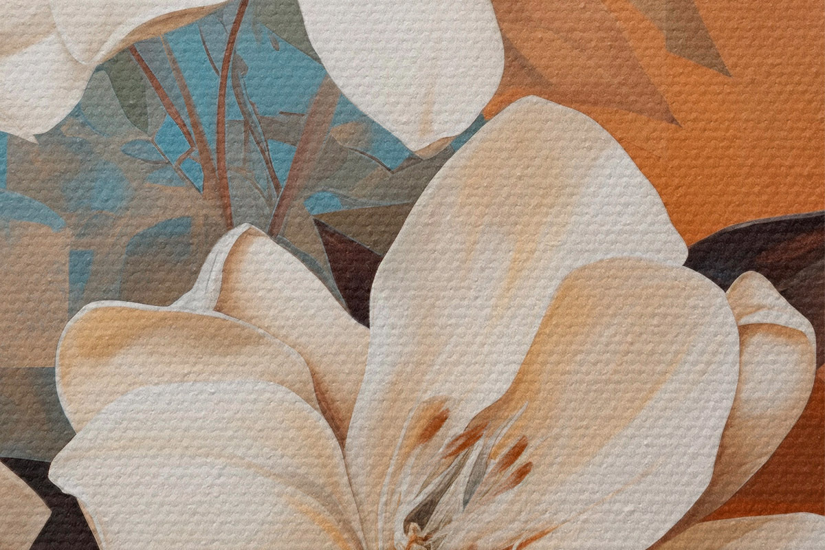 Foto Flores y hojas blancas abstractas con un fondo marrón y azul con formas abstractas, en un estilo minimalista Nr r46710