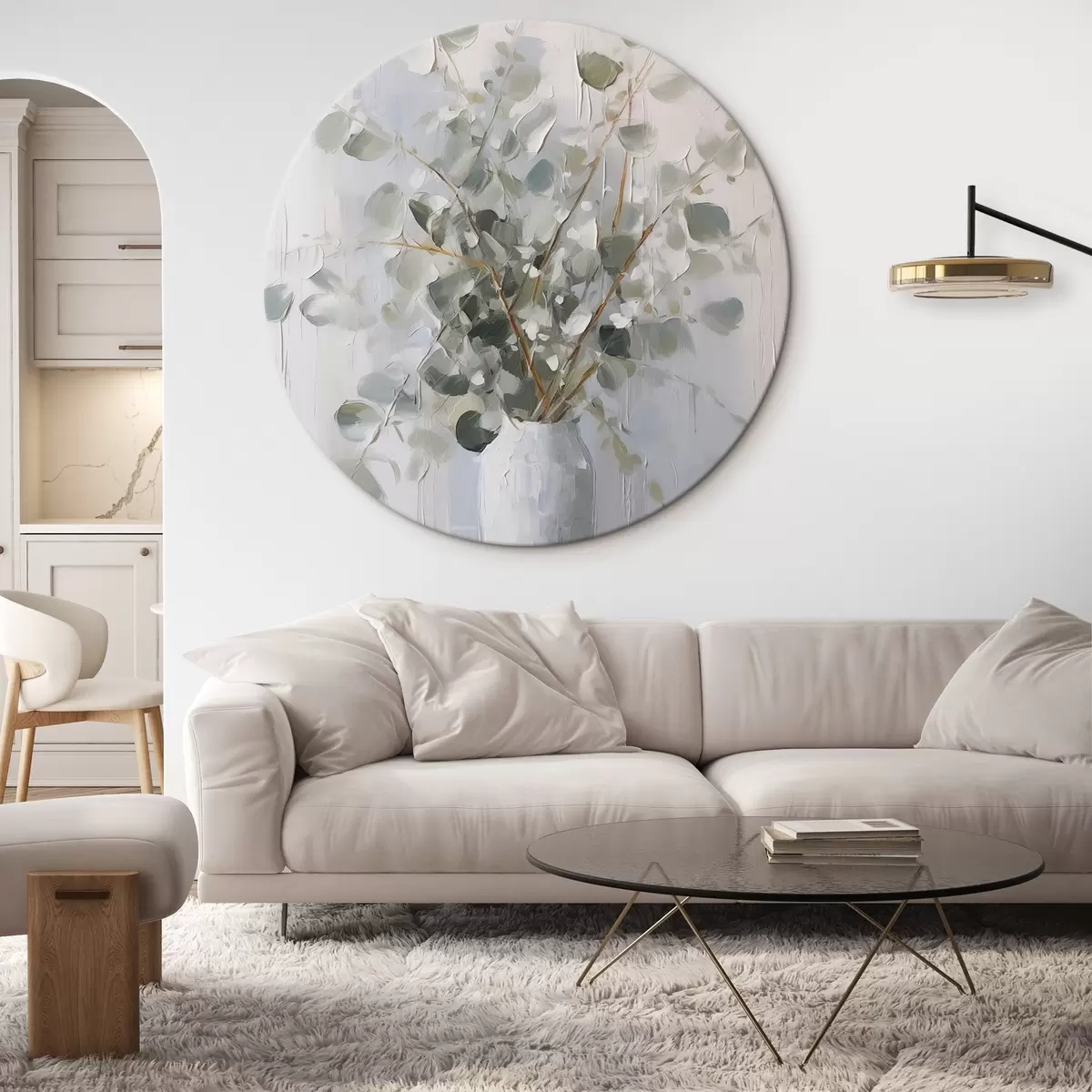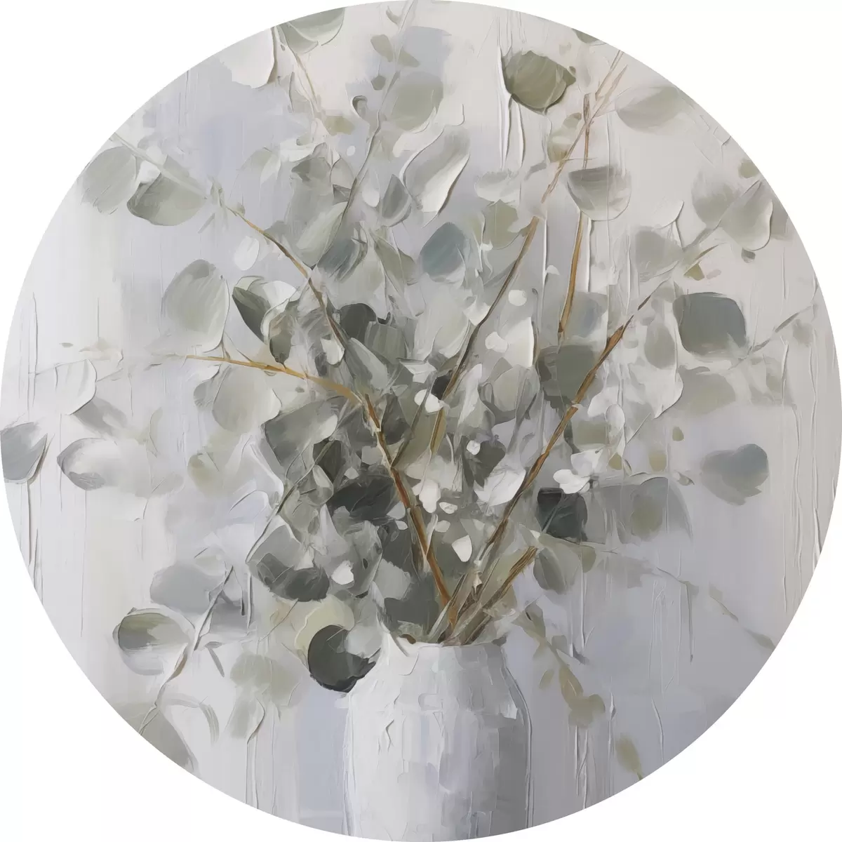 Cuadros redondos Ramas con follaje en un jarrón, pintura de imitación r46720