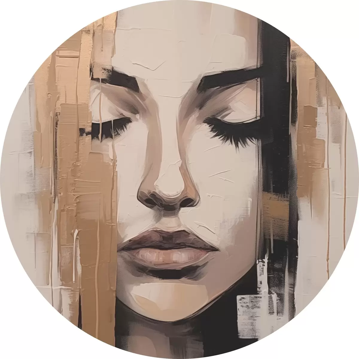 Cuadros redondos Retrato de una mujer. Pinceladas abstractas r46733