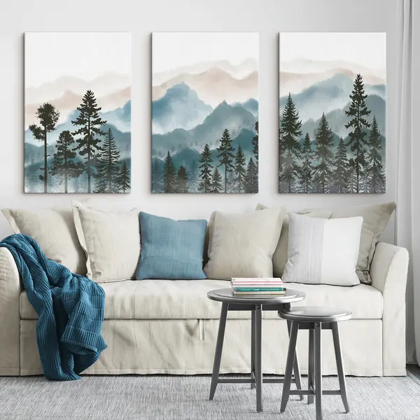 Cuadros Montañas serenas y siluetas de árboles Nr m00244