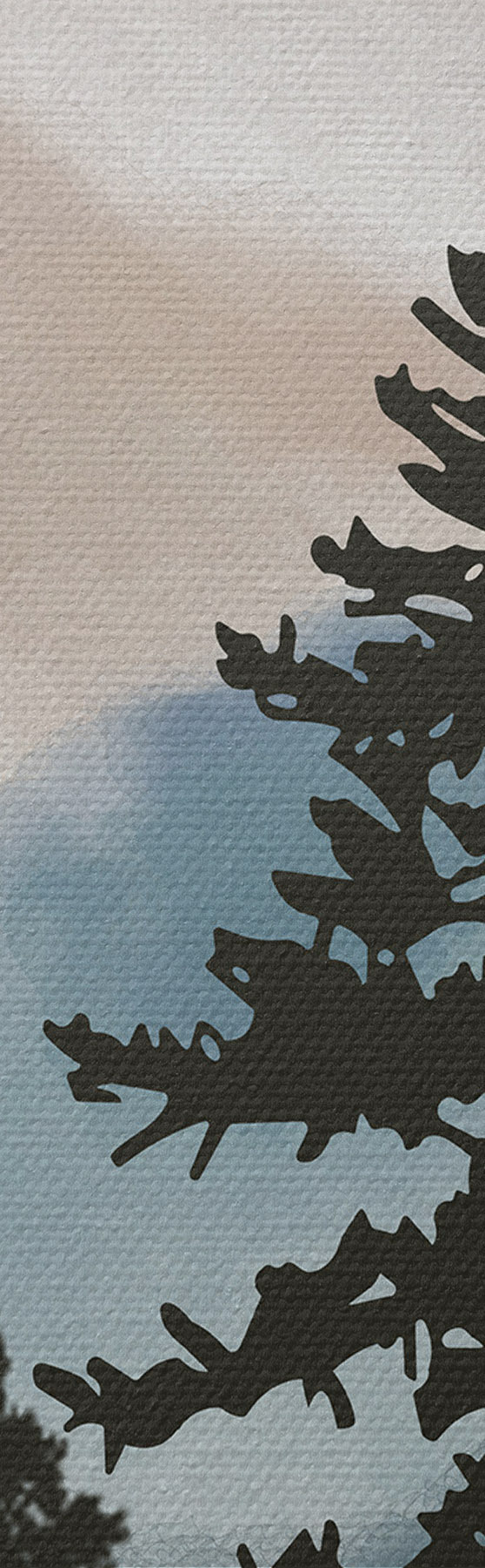 murales de pared Montañas serenas y siluetas de árboles m00244