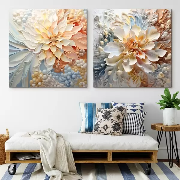 Hay tres tipos de material disponibles para pedidos: Lienzo Económico - material denso y duradero para impresión digital, idéntico al lienzo de pintor, superficie impermeable, reproducción realista de los detalles, material de grano medio. Lienzo Premium - la textura se asemeja a la de un lienzo de pintor (pequeños hilos entrelazados). Reproducción suave y detallada de la imagen sobre una superficie mate. Eco-Premium - tejido 100% algodón de alta calidad. Gracias a las fibras naturales de algodón, el material es duradero y resistente al desgaste. Excelente reproducción del color y el detalle.