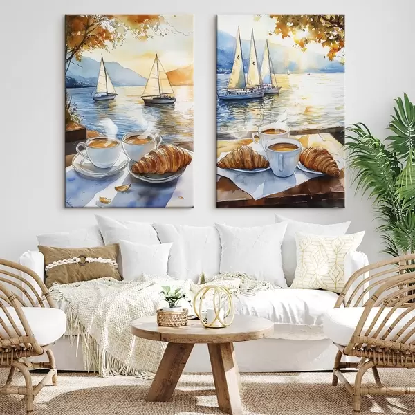 Cuadros Puesta de sol en el lago con ups de café, veleros, naturaleza, viajes Nr m00407