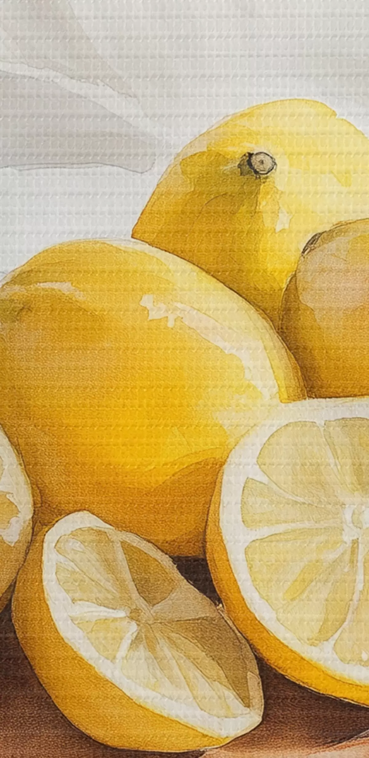 Cuadros Panqueques con mantequilla de maní, limones en la tabla de madera, estilo acuarela Nr m00416